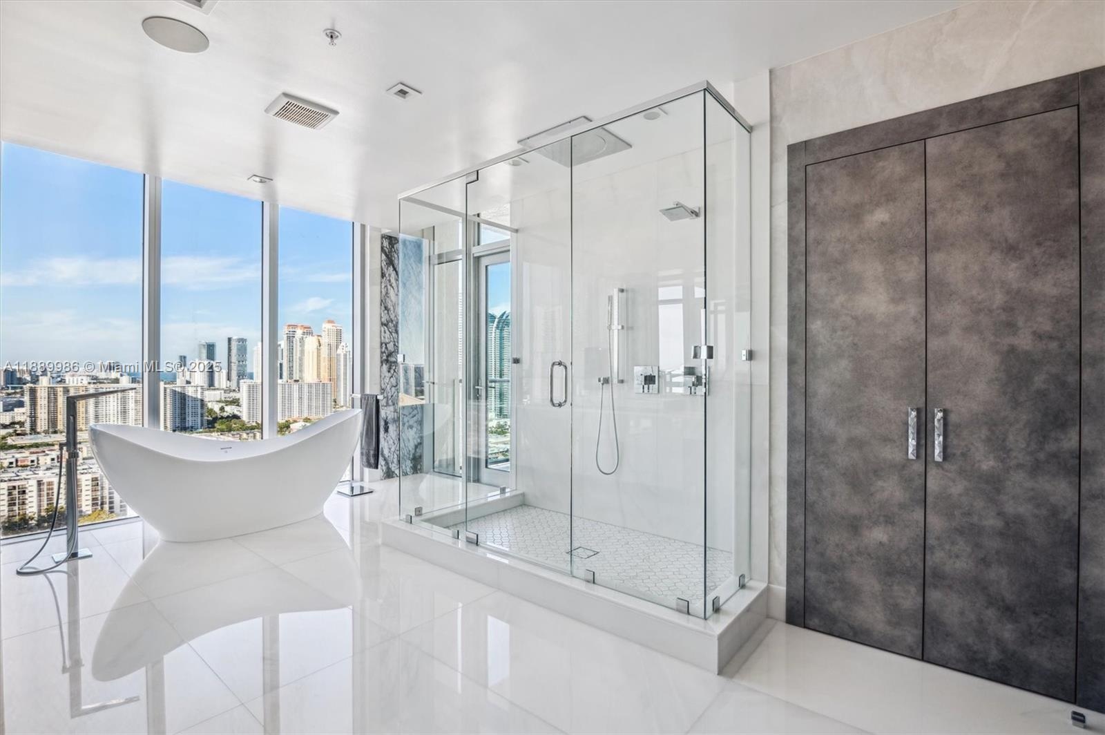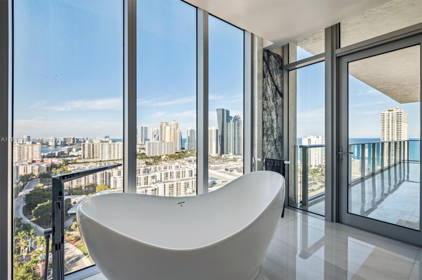 - - Freestanding Soaker Bathtub w/ Ocean & City Skyline Views. Privacy shades installed. Access to Balcony.