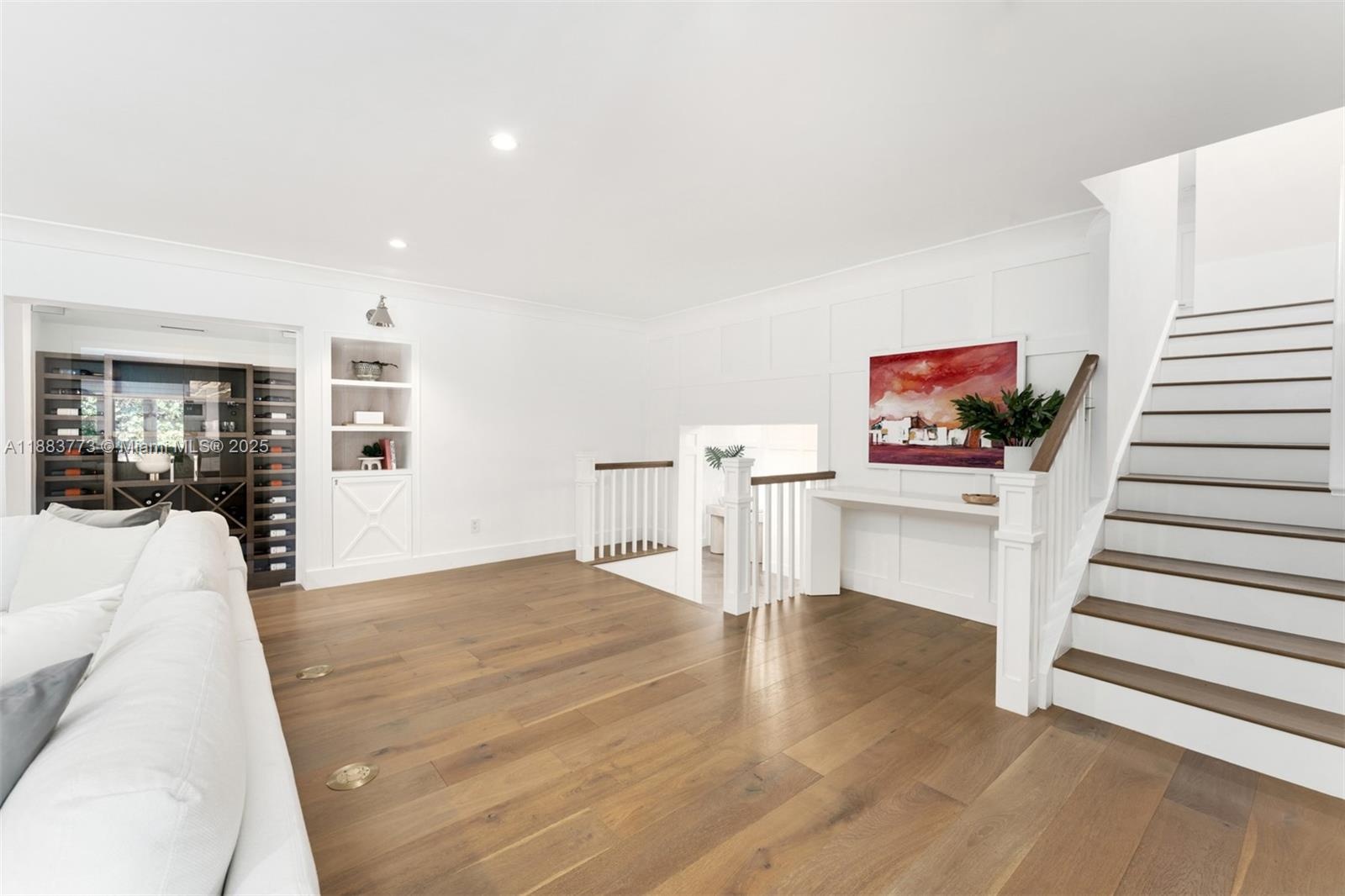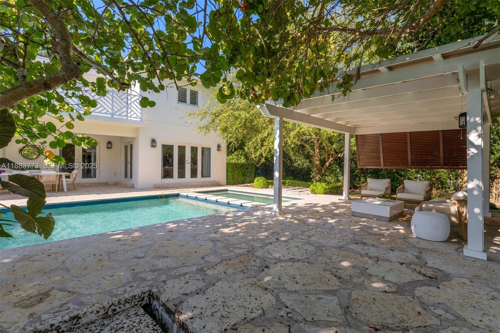 A beautifully appointed waterfront home in the gated community of Gables by the Sea, this 4-bed, 4.5-bath plus den residence spans 4,467 sq ft on a 12,366 sq ft lot with direct ocean access, 50 ft seawall, and private dock. Interiors showcase a chef’s kitchen, custom wet bar, wine cellar, and spacious living areas designed for entertaining. The expansive primary suite offers walk-in his and hers closets and a private terrace. Enjoy alfresco living on the covered patio with saltwater pool. With 3 upstairs bedrooms featuring ensuite baths, 1 downstairs, and a den, this home blends coastal elegance with modern luxury in one of South Florida’s most desirable neighborhoods.