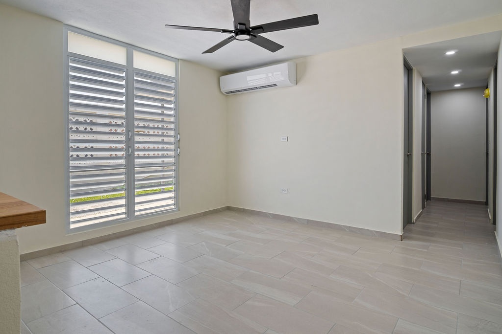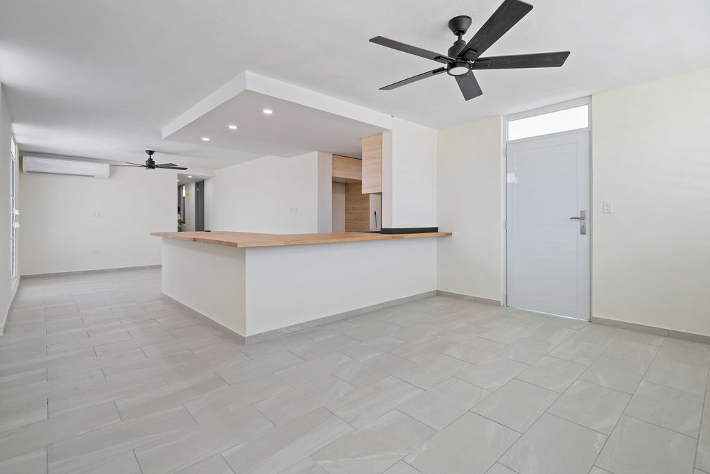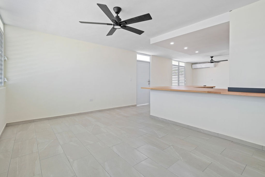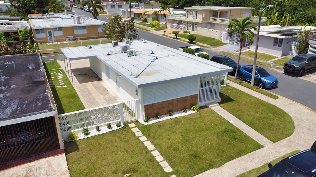 DescriptionWelcome to Berwind Estates in Río Piedras, San Juan. This fully renovated 3-bedroom, 2-bath home is located within a secure gated community and offers 1,165 sq ft of modern living space on a 507 sq meter corner lot. The single-level layout features a brand-new kitchen and bathrooms, elegant tiled floors, and a contemporary fascia ceiling with recessed lighting. Every detail has been upgraded, including new electrical wiring and plumbing, aluminum security doors and windows with screens, inverter air conditioners in all rooms, and PVC closets with new doors.
