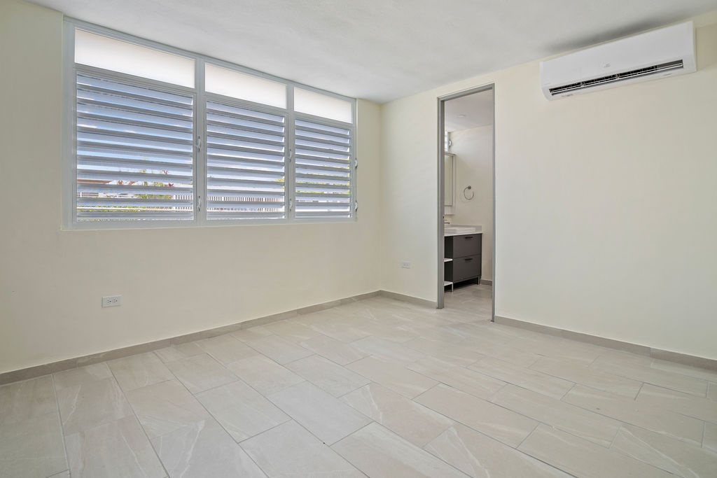 Welcome to Berwind Estates in Río Piedras, San Juan. This fully renovated 3-bedroom, 2-bath home is located within a secure gated community and offers 1,165 sq ft of modern living space on a 507 sq meter corner lot. The single-level layout features a brand-new kitchen and bathrooms, elegant tiled floors, and a contemporary fascia ceiling with recessed lighting. Every detail has been upgraded, including new electrical wiring and plumbing, aluminum security doors and windows with screens, inverter air conditioners in all rooms, and PVC closets with new doors.