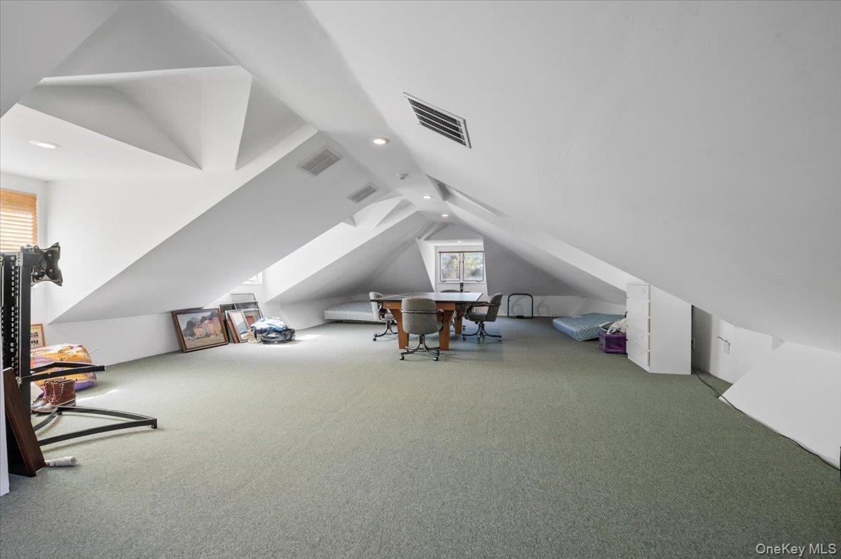- Additional living space featuring carpet flooring, lofted ceiling, and recessed lighting