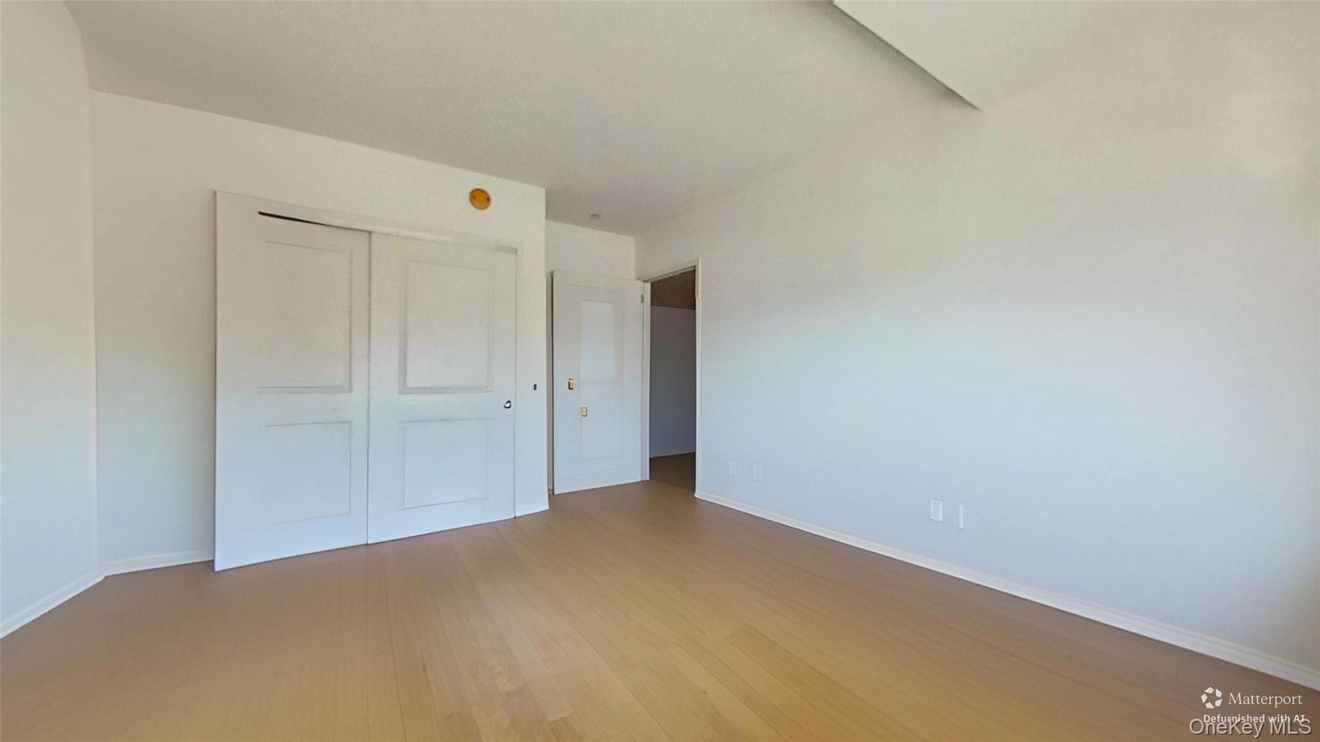 - Unfurnished bedroom featuring light wood-style floors and a closet