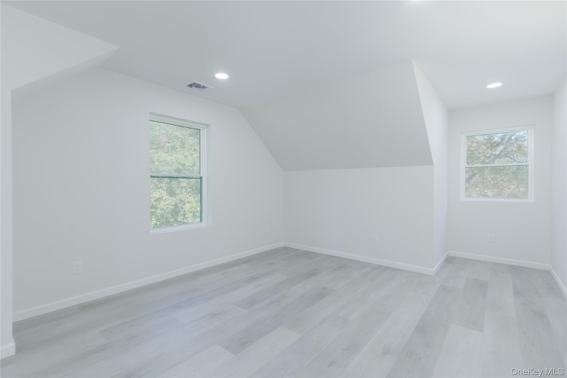- Bonus room with plenty of natural light, recessed lighting, light wood-type flooring, and vaulted ceiling