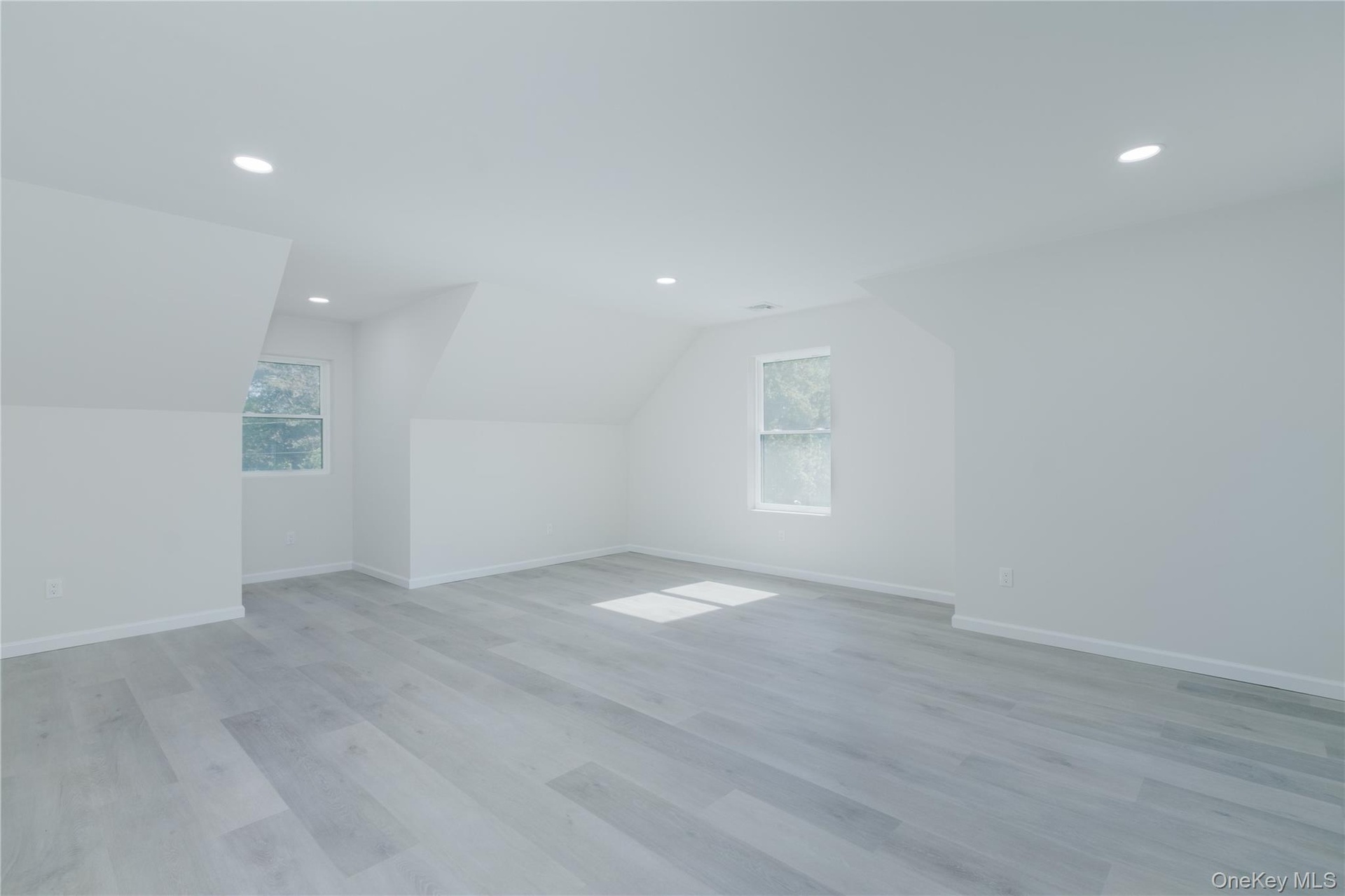 - Bonus room with recessed lighting, light wood-style floors, and vaulted ceiling
