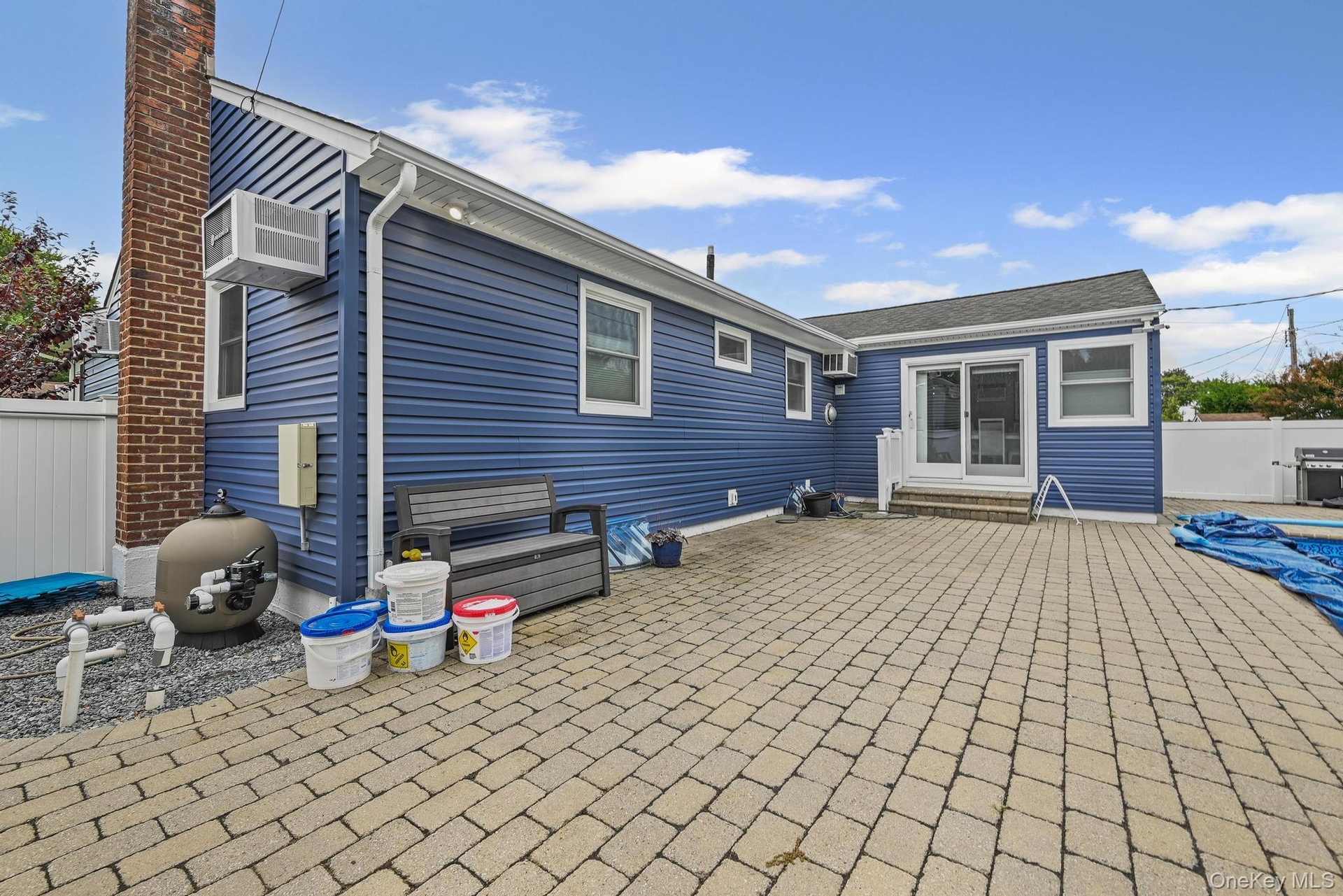 - Back of house with a patio area, entry steps, and a wall unit AC