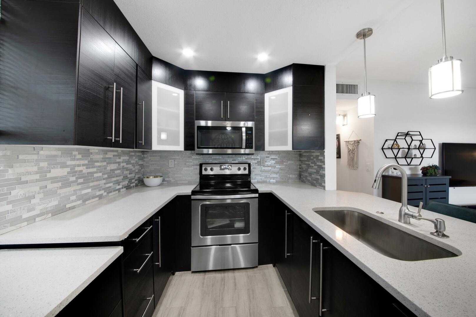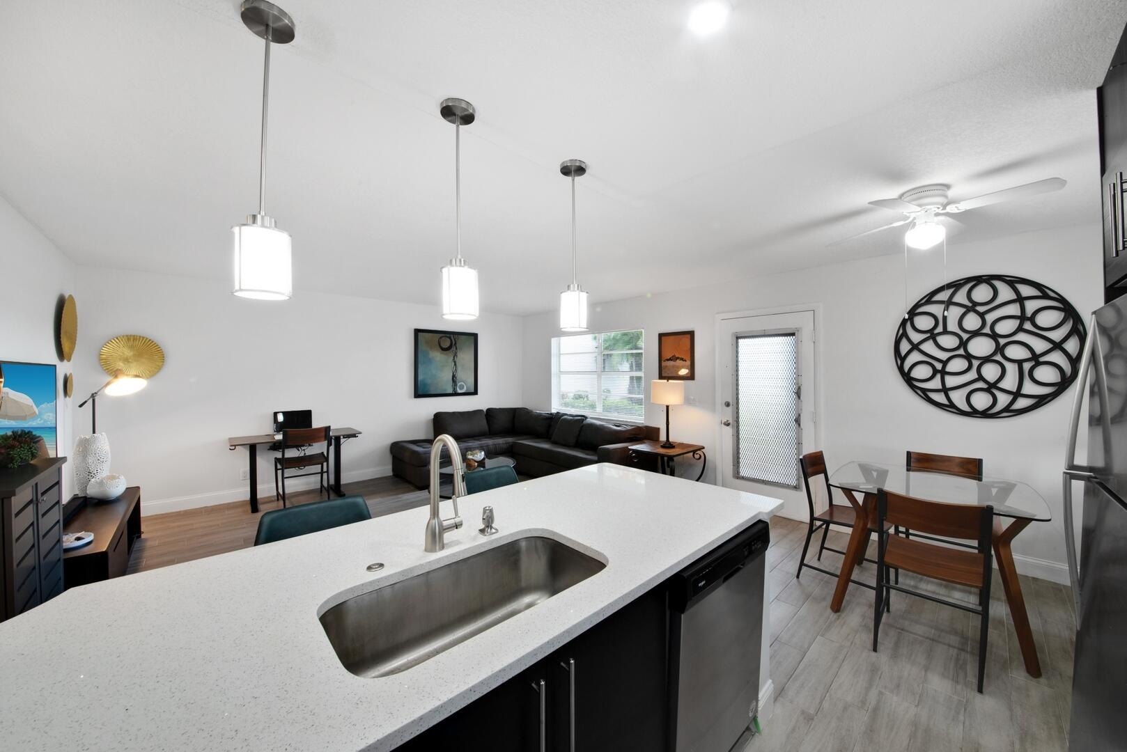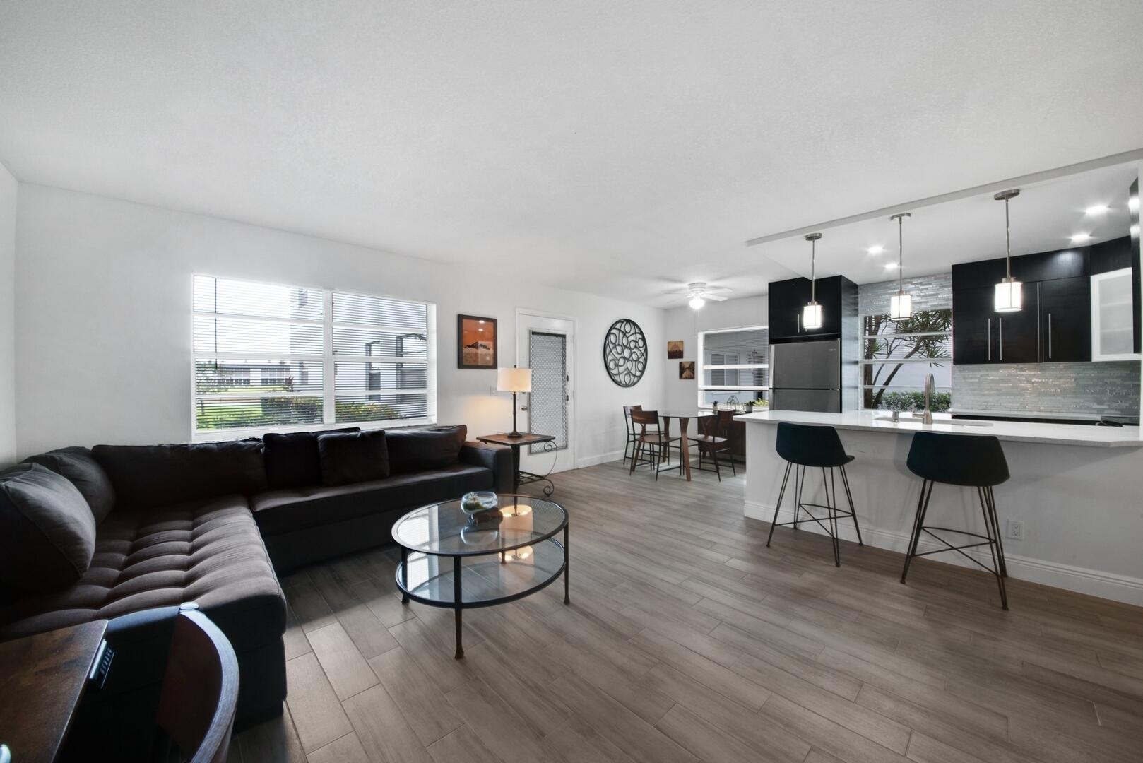 DescriptionStep into this meticulously updated 2-bedroom, 2-bathroom condo where every detail has been thoughtfully curated for modern living. Located on the first floor for easy access.The gourmet kitchen is a chef's delight, boasting custom-designed cabinets, brilliant quartz countertops, all newer stainless steel appliances, and contemporary fixtures. The open-concept living area flows seamlessly, offering stunning, golf course and water views.The entire unit features durable, elegant wood-look tile flooring, providing a cohesive and upscale feel. Both bathrooms have been fully remodeled with luxurious marble and designer tilework. Retreat to the enclosed sunroom/patio, featuring a beautiful ceramic tile, offering a serene garden area view. Located in a prime, quiet section of the community.