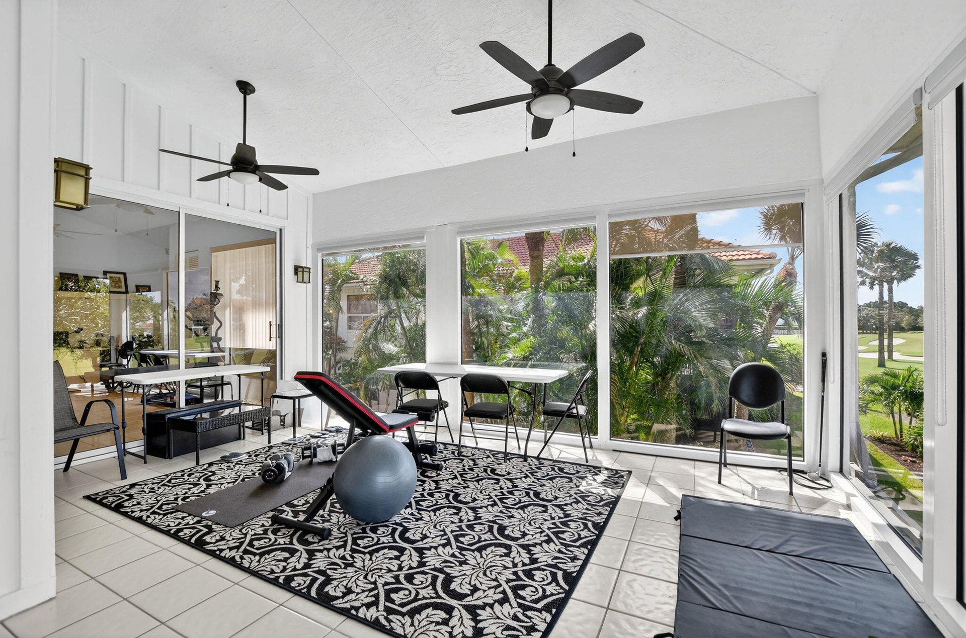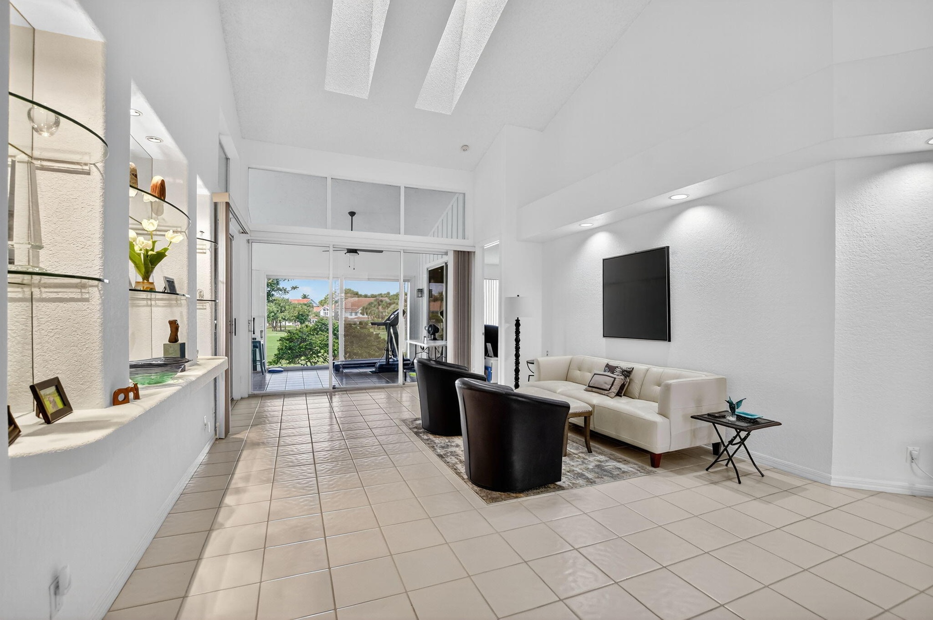 Located in Nassau Bay within the prestigious gated Broken Sound Country Club (mandatory membership), this bright second-floor condo offers 2,904 sq/ft of space, featuring panoramic golf course views and abundant natural light from large windows and skylights. The layout includes three bedrooms, two full baths, and one half bath, including a primary suite with dual sinks, separate tub and shower, walk-in closets, and direct patio access. Multiple living areas--kitchen with stainless steel appliances, a breakfast nook, and an in-unit washer/dryer, formal dining, living room, and family room. The enclosed patio features impact windows and blinds, overlooking the fairways and offering a versatile bonus space for lounge or office. A must-see residence in Boca Raton's premier gated community.