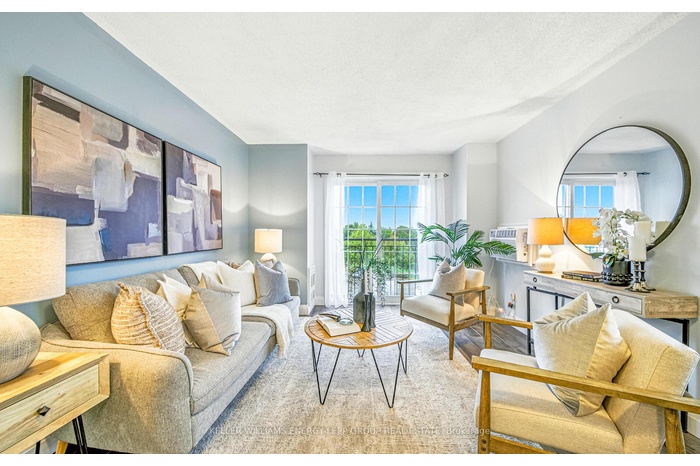 DescriptionBright and beautifully renovated south-facing corner unit in the heart of Bowmanville. This stunning 2-bedroom home offers rare privacy with no neighbours above and showcases a stylish open-concept layout. The kitchen features a centre island with bar seating, flowing seamlessly into a spacious living area with a Juliet balcony to enjoy the outdoor breeze. Renovated in October 2024, the home boasts a brand-new kitchen, bathroom, flooring, baseboards, and fresh paint, complemented by modern finishes and hardwood laminate flooring. The primary bedroom includes a walk-in closet, adding both function and luxury. Perfectly situated in a prime location with easy access to the 401, schools, parks, shopping, and public transit. Click the Realtor link for feature sheet, floor plan and you tube videoVirtual Tour: https://my.matterport.com/show/?m=NVDyomqpNR2&mls=1Amenities- Carpet Free
