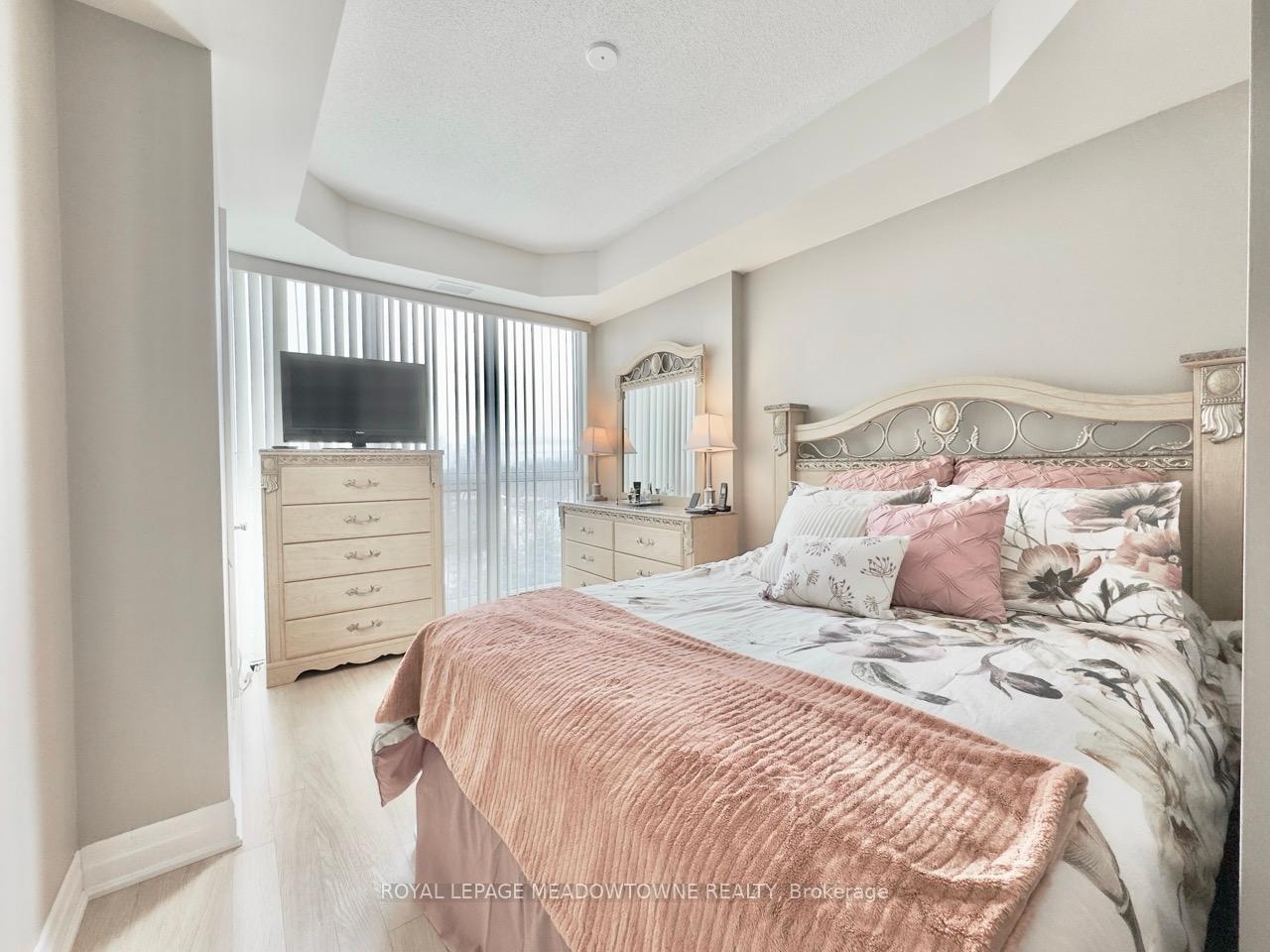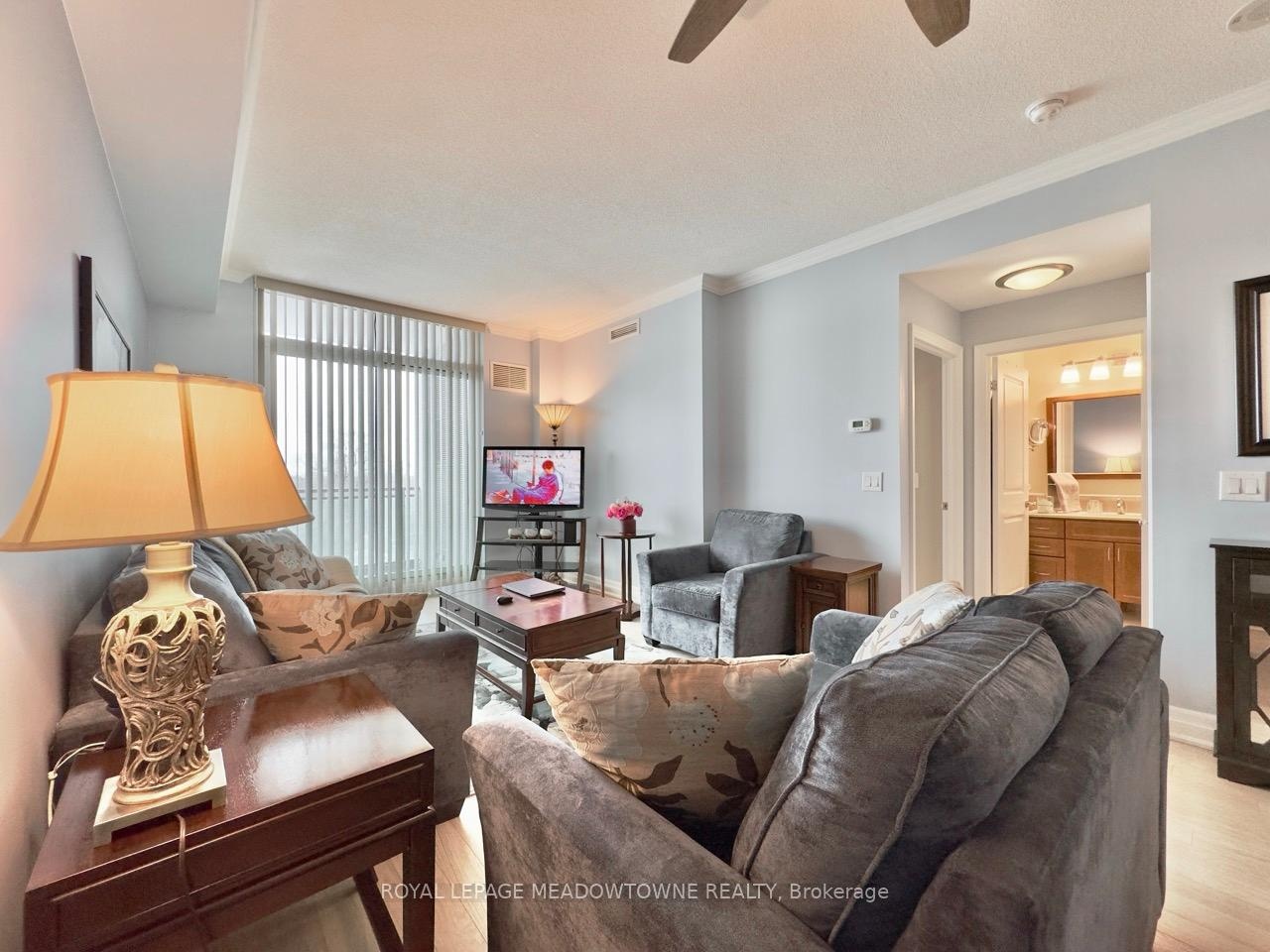 DescriptionWelcome to this stunning condo unit at 100 John Street #403, ideally situated in the heart of downtown Brampton. This beautifully maintained 743 sq ft (per MPAC) apartment offers modern living with a highly functional layout and impressive features throughout. The open-concept living/dining space is bathed in natural light from floor-to-ceiling windows, showcasing spectacular southeast views. Premium finishes include elegant 9-foot ceilings accented with crown molding throughout. The living area flows seamlessly to a generous balcony - perfect for outdoor enjoyment and unobstructed south easterly views. The contemporary kitchen features granite countertops, sleek stainless steel appliances, tile backsplash, and a convenient breakfast bar for casual dining. The spacious primary bedroom offers ample space, large windows with eastern exposure, and a walk-in closet with built-in organizers. A versatile den provides the perfect setup for a home office or guest room. Complete with a spacious 4-piece bathroom, vanity and built-in storage solutions. This well-managed building offers excellent amenities including 24-hour concierge, fully equipped fitness center, theatre room, party/meeting room, guest suites, wine storage, and rooftop terrace. The prime downtown location puts you steps from GO Transit station, Farmers' Market, Rose Theatre, YMCA, Gage Park, Public Library, Etobicoke Creek Trail system, diverse dining options, and professional services. Enjoy seasonal community events & festivals right outside your door. Additional features include owned parking (Level B #12) and owned locker (Level B #133). This turnkey unit is ideal for first-time buyers, professionals, or downsizers seeking convenient urban living with all amenities at your doorstep.Amenities- Concierge