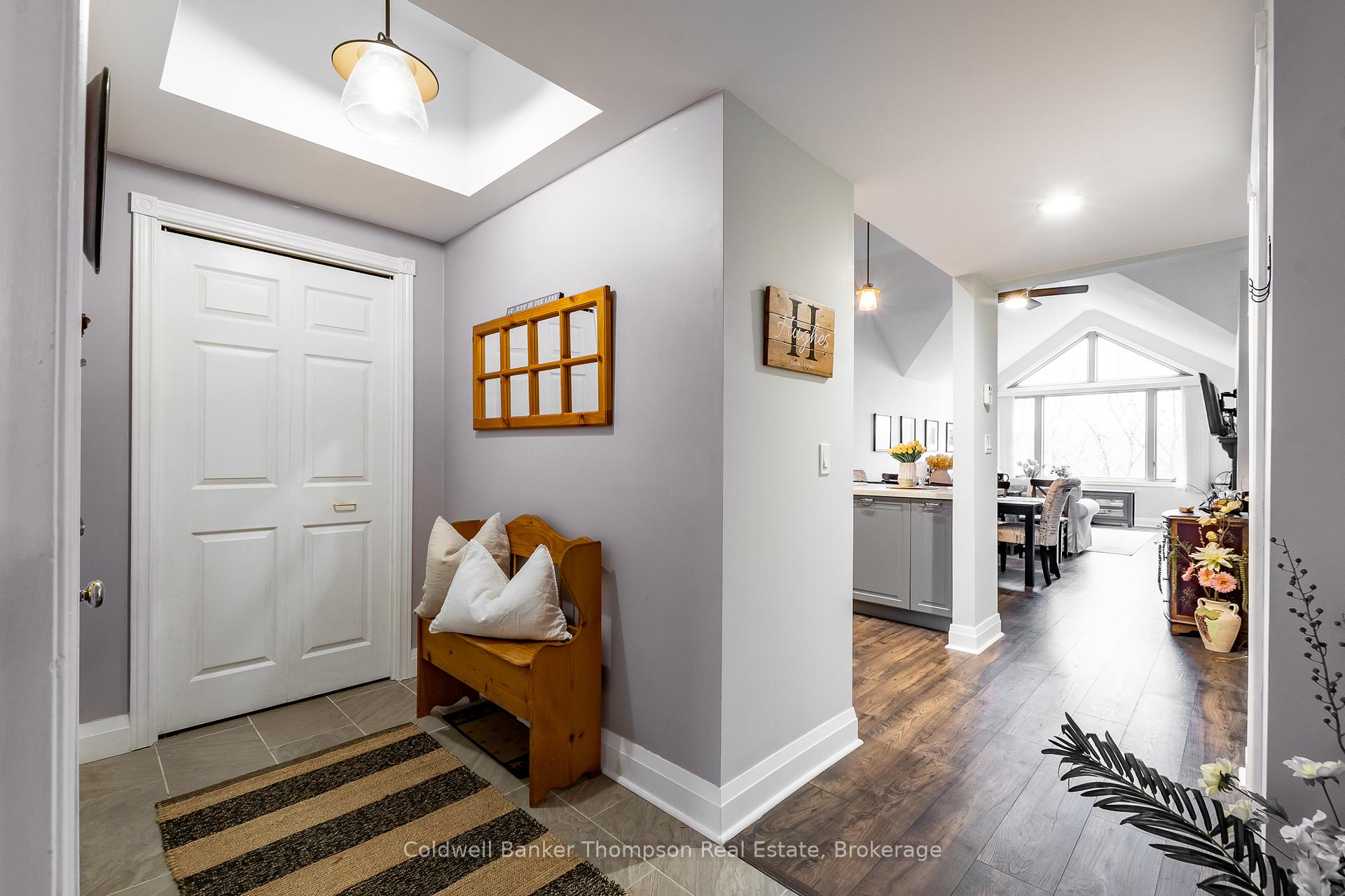 Welcome to this beautifully reimagined 2-bedroom, 2-bathroom condo that captures the essence of refined modern living. Inside you're greeted by gleaming hardwood floors that flow through most of the space, a warm invitation to explore this thoughtfully renovated gem. The kitchen is a masterpiece of design, featuring soaring ceilings that lend an airy feel, along with tall, extensive cabinetry for abundant storage. The details shine with stainless steel appliances, a dishwasher with a custom matching cupboard exterior, and sleek quartz countertops, offering both beauty and durability. A farmhouse bib-style sink and antique-inspired faucet hardware add a dash of vintage charm, balancing the contemporary aesthetic perfectly. The spacious, open-concept living area extends to a private balcony, accessible from both the living room and the primary bedroom suite, where you'll love relaxing with a coffee or taking in the peaceful surroundings. Each bedroom is designed with privacy and luxury in mind. The primary suite boasts ample closet space and direct access to the balcony, while the second guest bedroom offers a walk-in closet and a well-appointed 4-piece ensuite bathroom a perfect setup for visitors or as a secondary suite. Embrace the ease of condo living with every convenience within reach: renowned golf courses, thrilling ski hills, a local hospital, and plenty of shopping, dining, and other amenities just moments away. This unit is versatile, ideal for year-round living or as an off-water cottage retreat. Find yourself at home in a space where modern elegance, comfort, and convenience converge, making every day feel like a getaway.