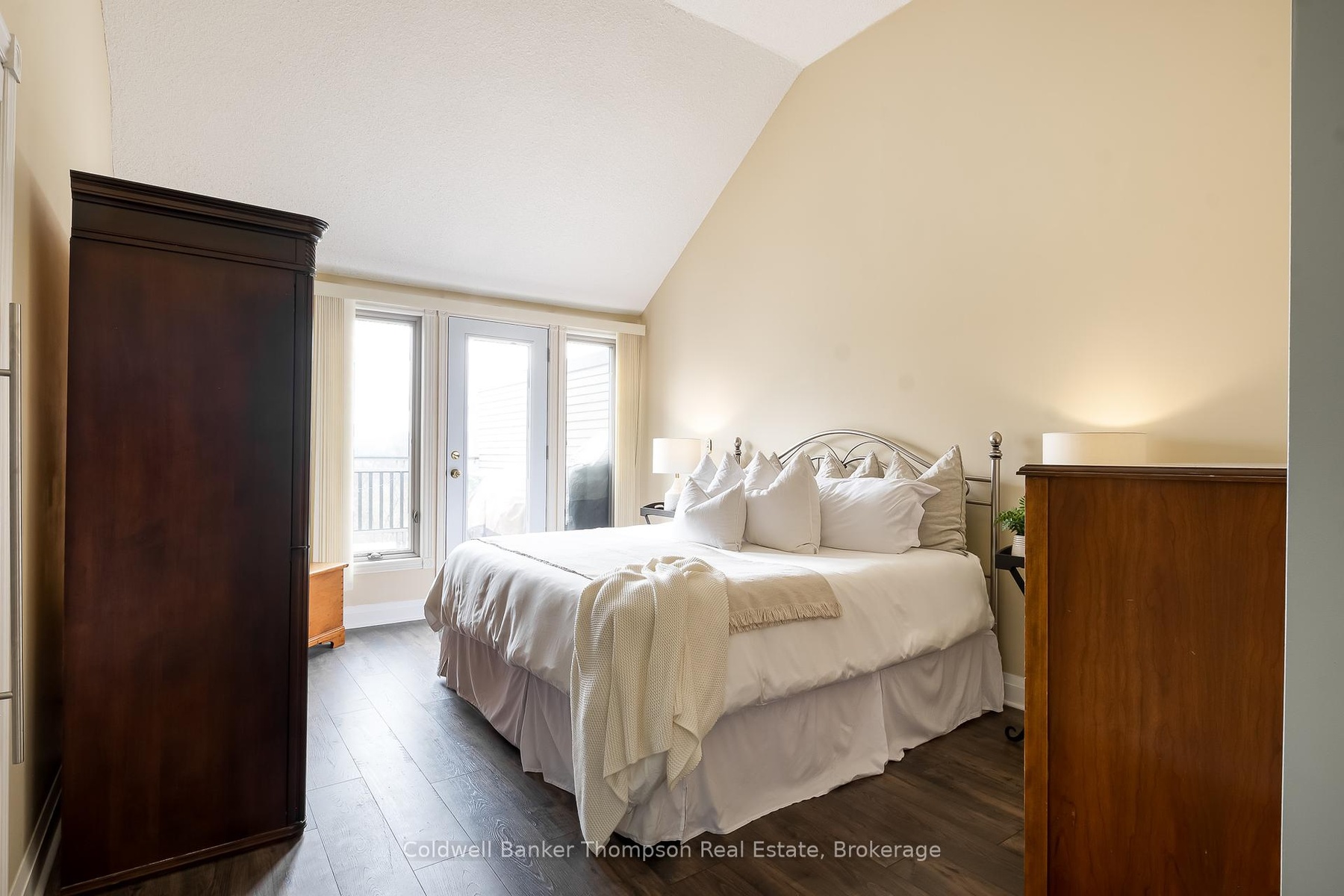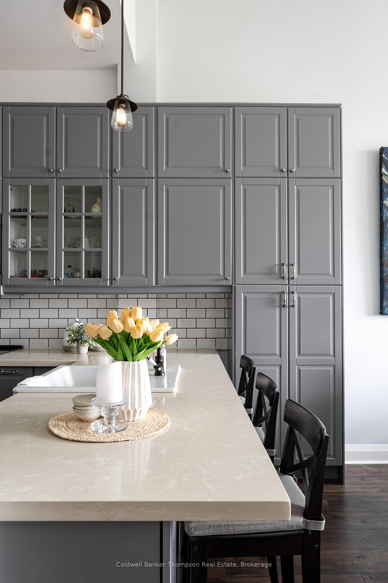 DescriptionWelcome to this beautifully reimagined 2-bedroom, 2-bathroom condo that captures the essence of refined modern living. Inside you're greeted by gleaming hardwood floors that flow through most of the space, a warm invitation to explore this thoughtfully renovated gem. The kitchen is a masterpiece of design, featuring soaring ceilings that lend an airy feel, along with tall, extensive cabinetry for abundant storage. The details shine with stainless steel appliances, a dishwasher with a custom matching cupboard exterior, and sleek quartz countertops, offering both beauty and durability. A farmhouse bib-style sink and antique-inspired faucet hardware add a dash of vintage charm, balancing the contemporary aesthetic perfectly. The spacious, open-concept living area extends to a private balcony, accessible from both the living room and the primary bedroom suite, where you'll love relaxing with a coffee or taking in the peaceful surroundings. Each bedroom is designed with privacy and luxury in mind. The primary suite boasts ample closet space and direct access to the balcony, while the second guest bedroom offers a walk-in closet and a well-appointed 4-piece ensuite bathroom a perfect setup for visitors or as a secondary suite. Embrace the ease of condo living with every convenience within reach: renowned golf courses, thrilling ski hills, a local hospital, and plenty of shopping, dining, and other amenities just moments away. This unit is versatile, ideal for year-round living or as an off-water cottage retreat. Find yourself at home in a space where modern elegance, comfort, and convenience converge, making every day feel like a getaway.Amenities- Carbon Monoxide Detectors