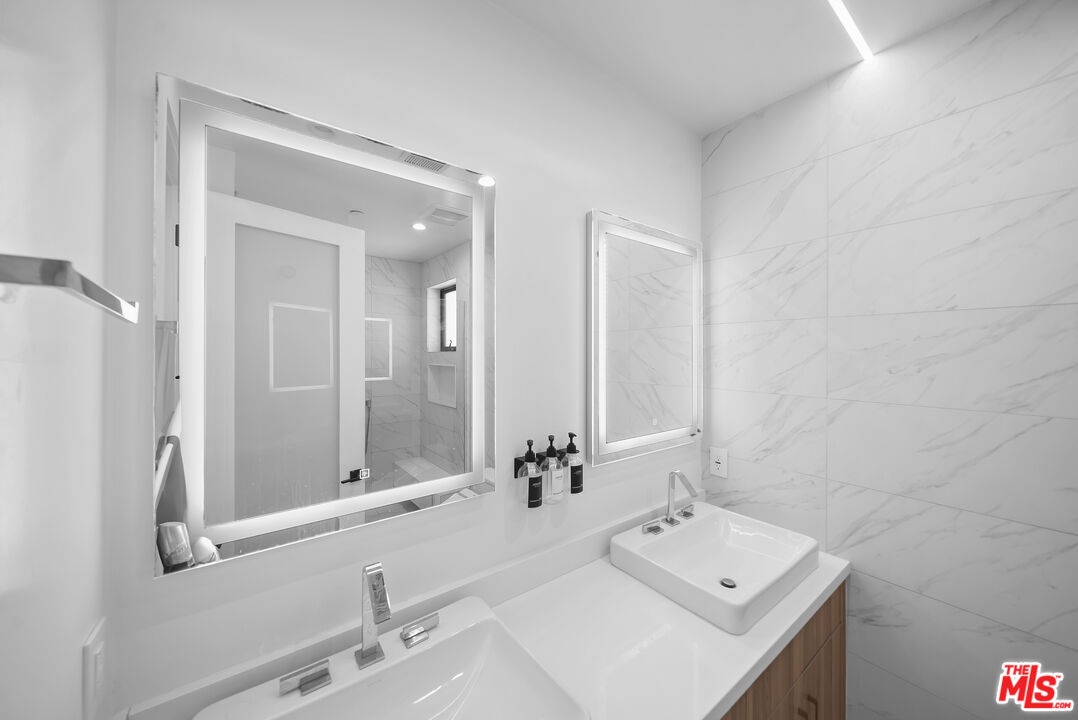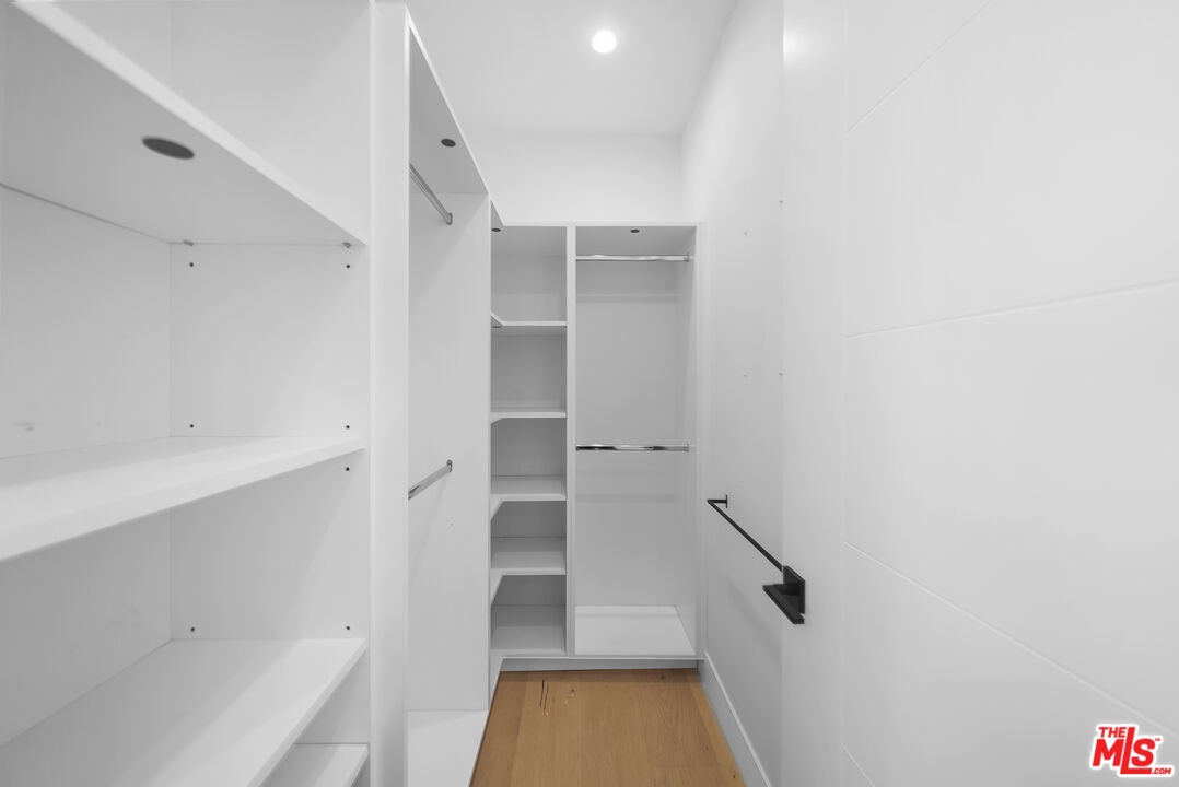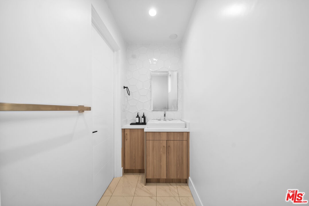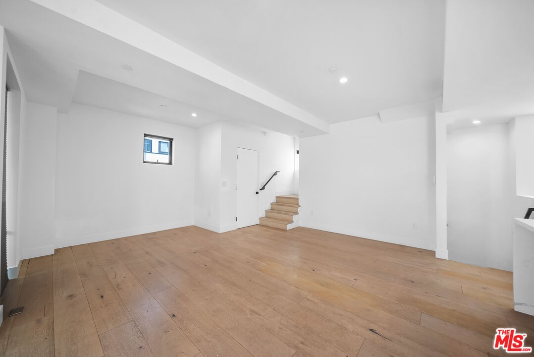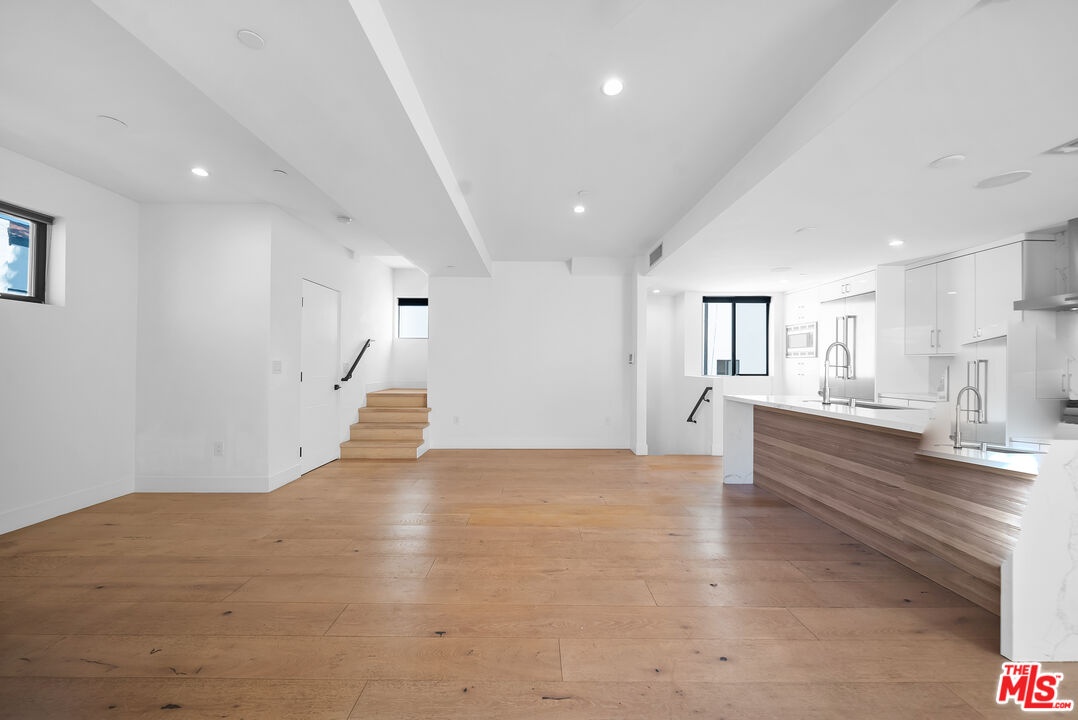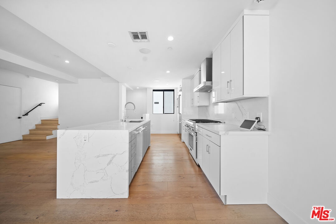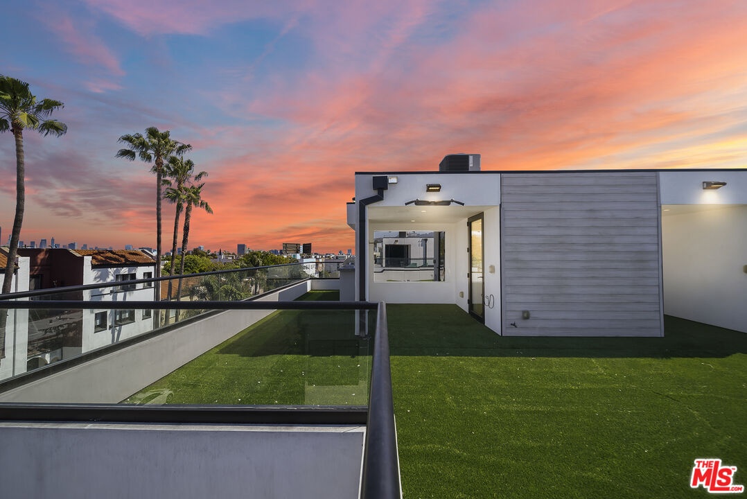 PRICE REDUCED! Newer Construction 3BR/4BA Corner Unit with Rooftop Deck + Iconic Views! Modern home located in the heart of Hollywood's Studio District. Built in 2018, this spacious home features an open-concept floor plan with natural hardwood floors, recessed lighting, and abundant natural light. The main level includes a versatile bedroom/office, powder room, and direct access to a private 2-car garage.The second level opens to a large great room and chef's kitchen with quartz center island, stainless steel appliances, gas range, and built-in ceiling speakers. Three additional en-suite bedrooms are located on the upper levels, each with generous closet space and updated bathrooms. Smart home features include app/voice-controlled lighting, in-ceiling speaker system with 4 zones and individual amp controls, MyQ smart garage access, and security cameras at all entry points. The private rooftop deck offers wrap-around VIEWS of the Hollywood Sign and Downtown LA, complete with a built-in BBQ and multiple seating areas. Two guest parking spaces included. Prime location near Netflix HQ, Paramount, Sunset Gower, Raleigh Studios, and Larchmont Village.