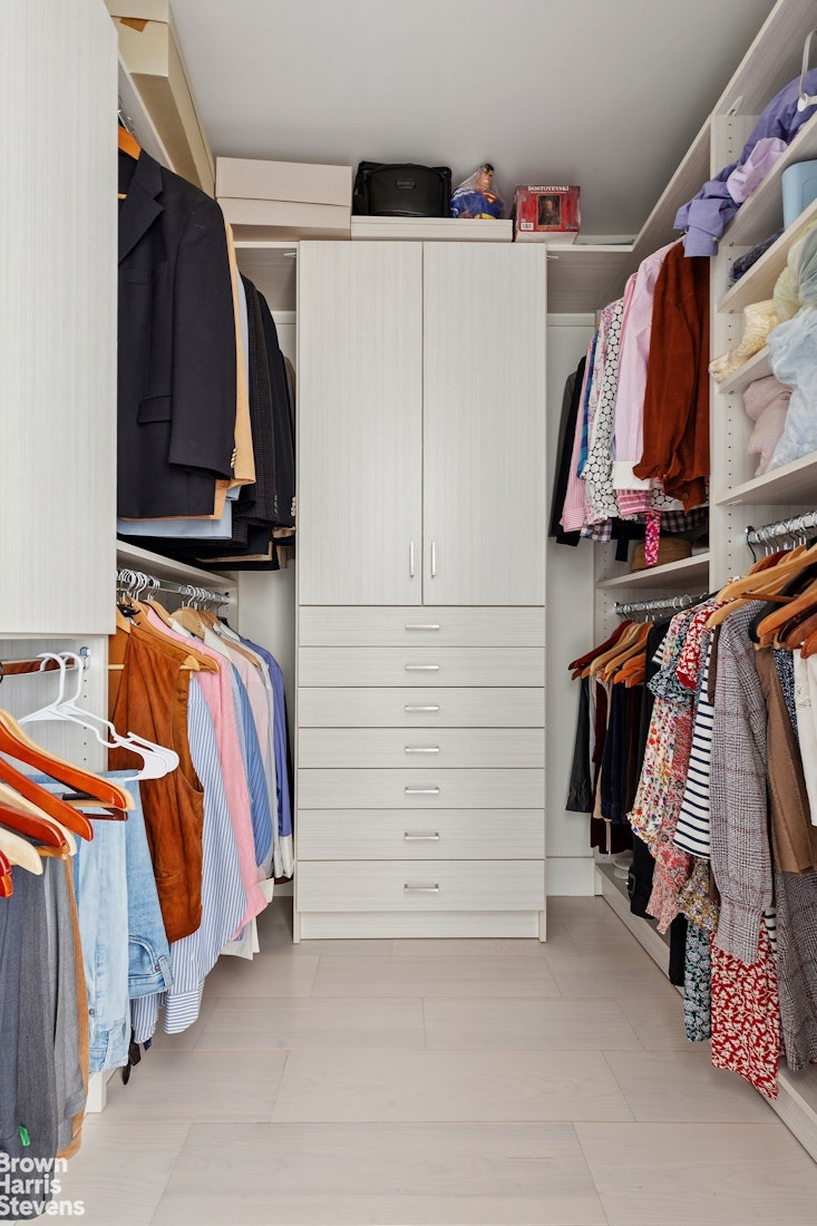 King-sized bedrooms, both with elegant en-suite full baths, feature light-colored 8-inch Carlisle wide-plank wood floors, brilliant light and generous storage, including a walk-in California closet in the primary suite.