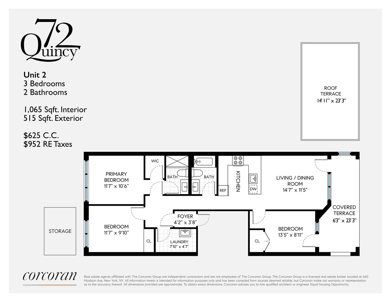 Unit 2A showcases an impeccable layout, full floor, 3 bedroom, 2 bath apartment with 2 large terraces and private storage.