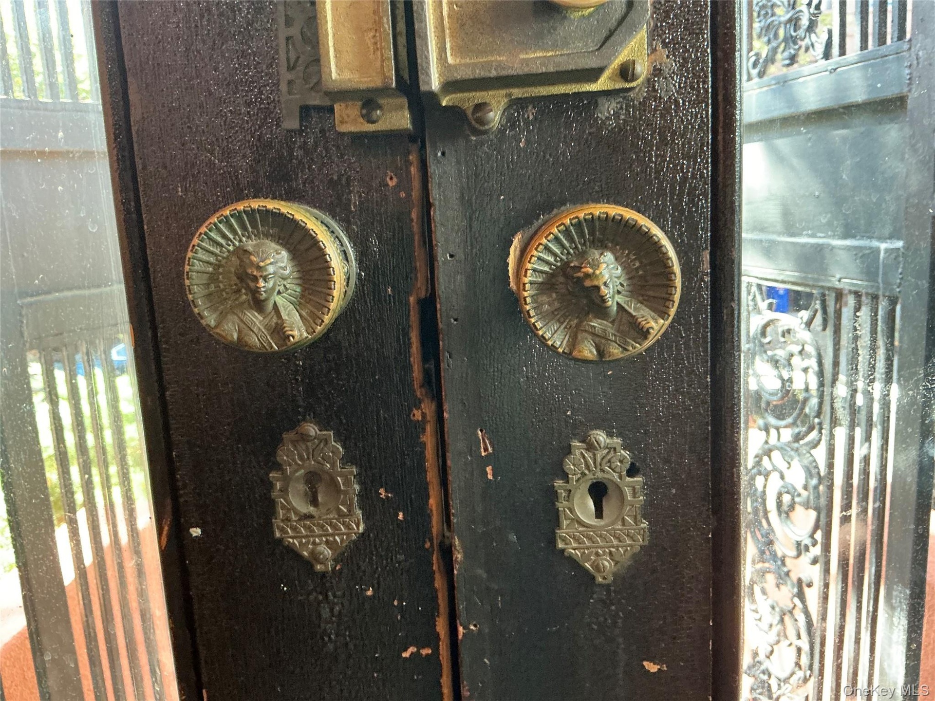 - Antique Victorian-era brass doorknobs- "Lady Sunburst" pattern