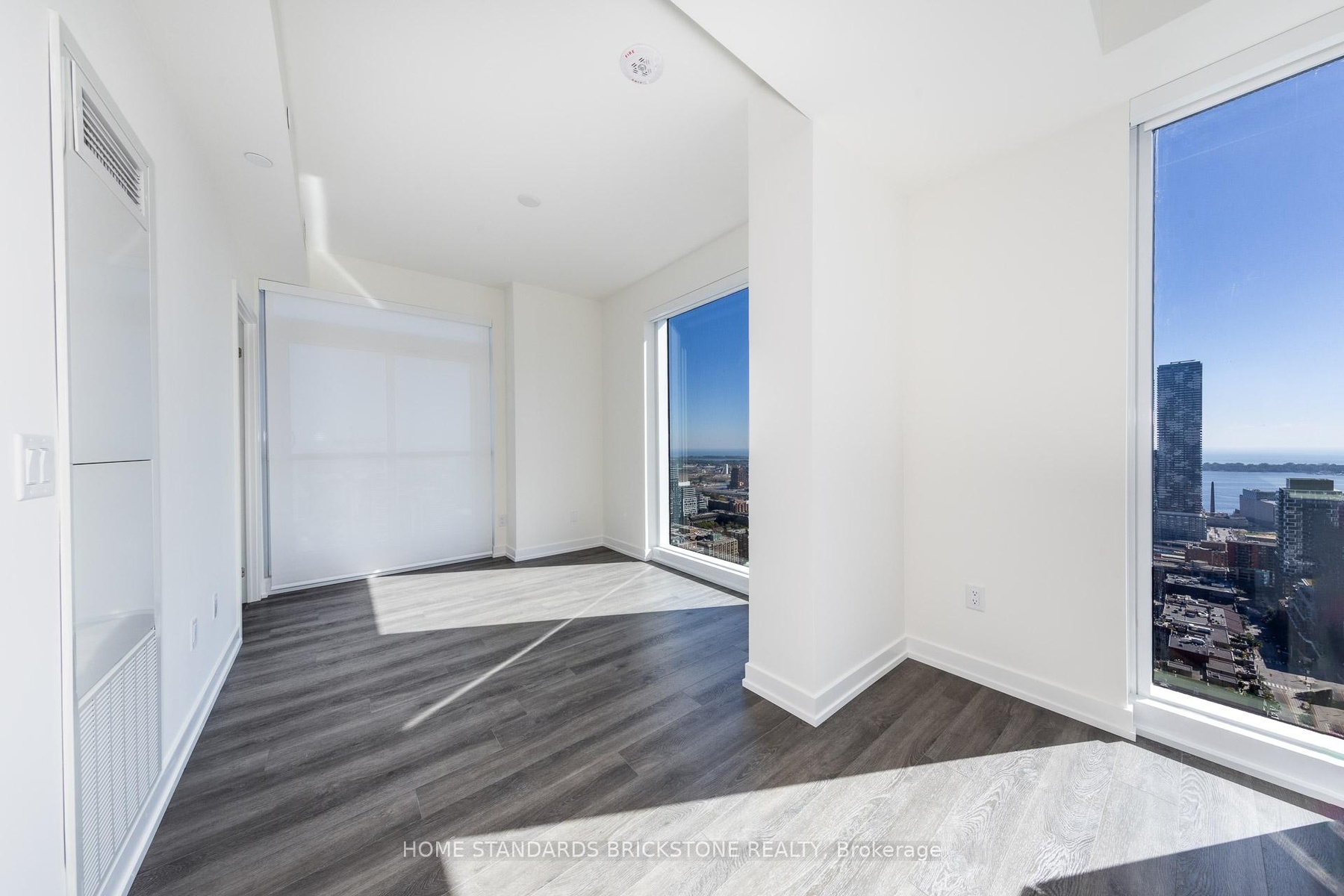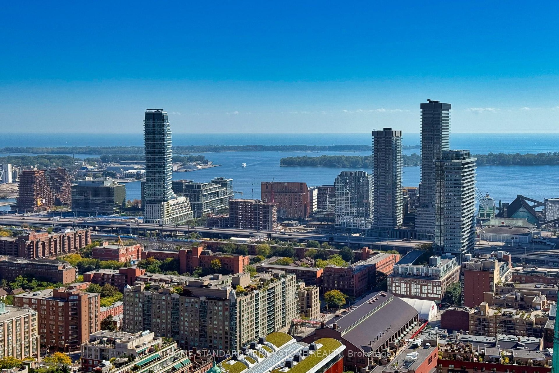 Welcome to The Saint by Minto brand new, never-lived-in southeast corner 3-bed, 2-bath suite offering approximately 858 sq. ft. of thoughtfully designed living space with sweeping, unobstructed views of Lake Ontario and Toronto's city skyline. Includes 1 PARKING and 1 LOCKER. Floor-to-ceiling windows fill the home with natural light throughout the day, enhanced by motorized blinds for comfort and privacy. The contemporary kitchen showcases a centre island with breakfast bar overlooking Lake Ontario, quartz counters, sleek cabinetry, and integrated appliances. The open-concept living and dining areas provide an airy, functional layout ideal for both everyday living and entertaining. Three spacious bedrooms include a primary bedroom with a 3-pc ensuite, a bright second bedroom, and a versatile third bedroom or home office. Amenities to be completed: over 17,000 sq. ft., including a 24-hr concierge, Wellness Centre with infrared sauna, meditation and spa rooms, fitness and yoga studios, co-working and social lounges, rooftop Zen Garden, and party terrace with fireplace and BBQs. Steps to St. Lawrence Market, King Subway, St. James Park, Eaton Centre, and premier dining and shopping.