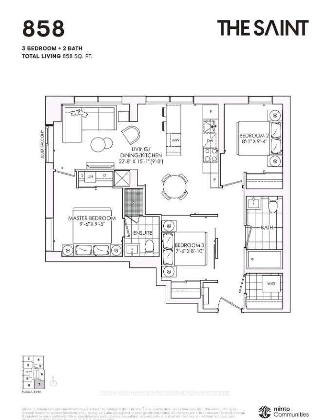 Welcome to The Saint by Minto brand new, never lived in southeast corner 3 bed, 2 bath suite offering approximately 858 sq.