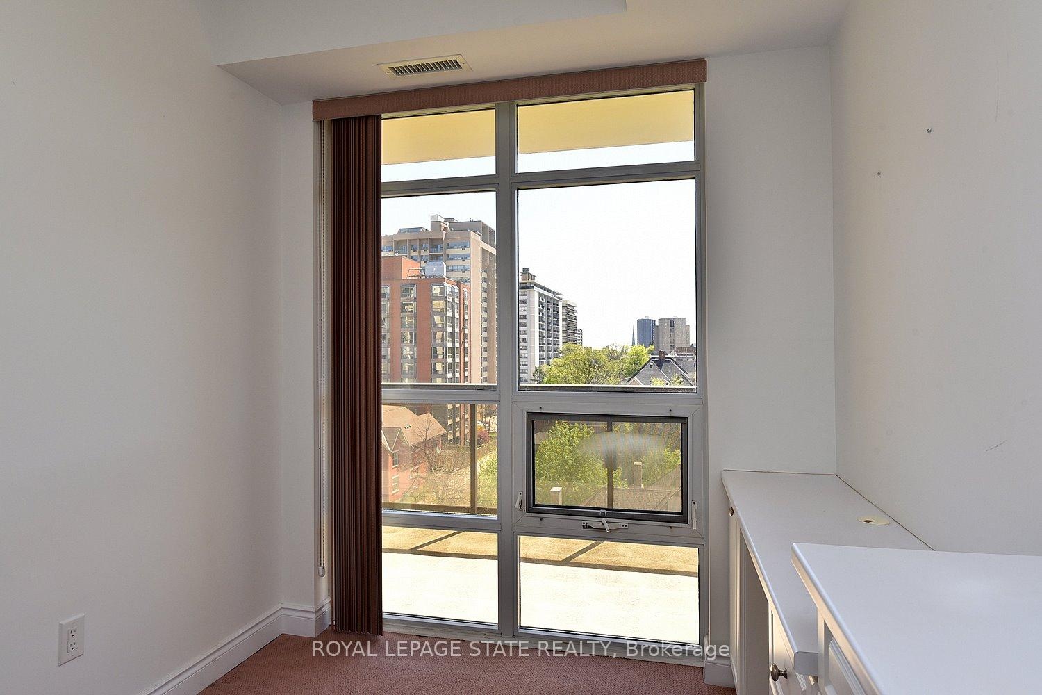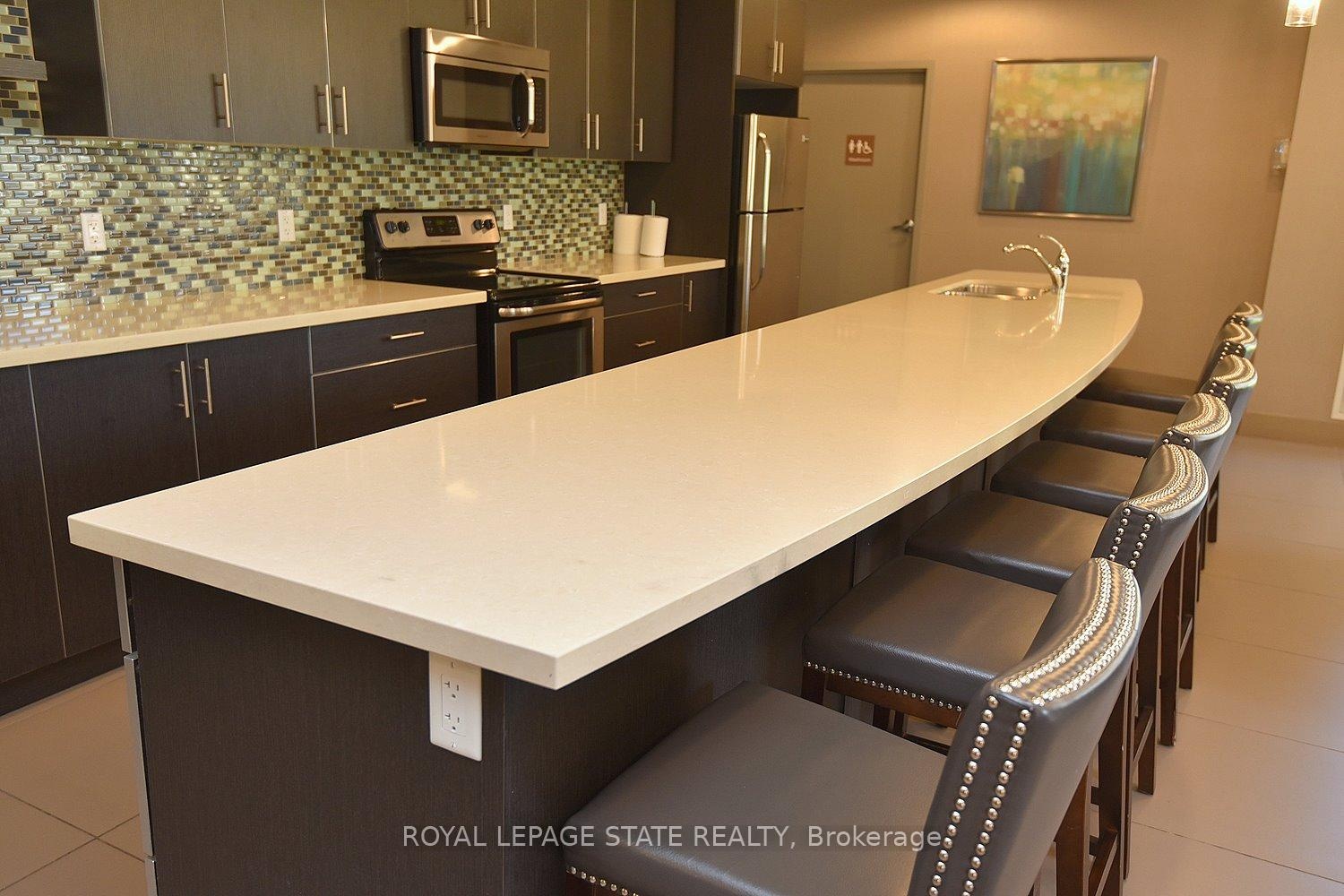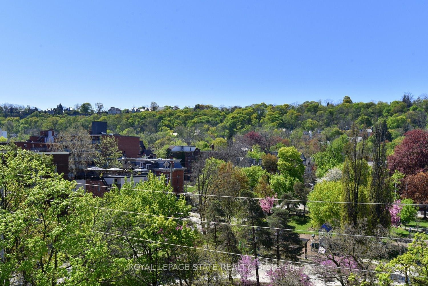 Welcome to City Square Condos in the heart of south central Hamilton! "THE MACNAB" model boasts approximately 673 sq ft + a 110 sq ft Open Balcony facing northeast, giving spectacular views of the City and the Escarpment! This well appointed "one owner" unit, offers 1 Bedroom plus Den, in suite Laundry, an underground owned Parking spot and Locker! Gleaming Hardwood floors in the spacious Living/Dining Room; Beautiful Kitchen Quartz countertops, with stainless steel Appliances; upgraded lighting featuring a Swarovski Crystal Chandelier! With a walk score of 93, you're not far from all the area favourite spots! Cafes and Shops, St Joe's Hospital, Durand Park, Medical offices, Downtown Shopping and more! This is ideal for young Professionals or Retirees alike! Building amenities include a front welcome Foyer, Exercise room, Party room and Bike storage!