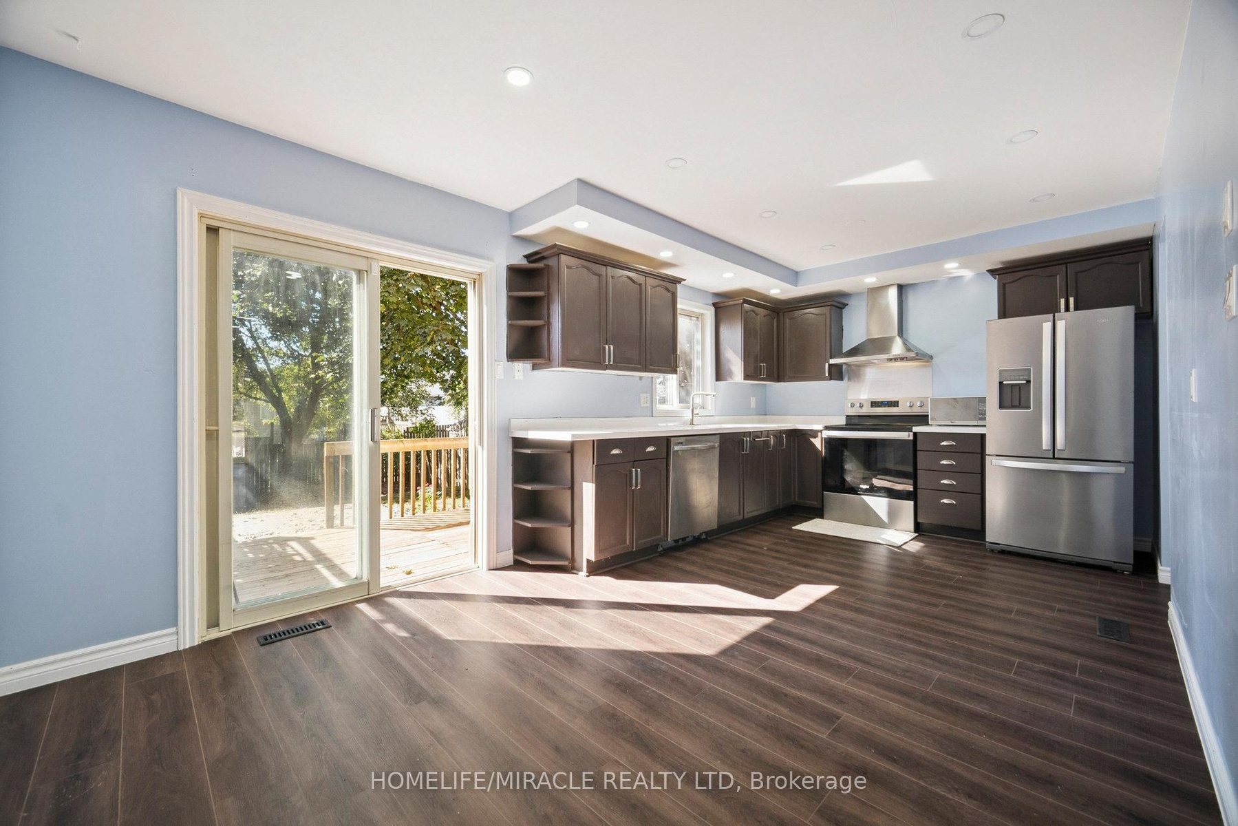DescriptionRenovated 2 storey, semidetached house in a beautiful neighbourhood. The house has a great layout with a large seperate living room and spacious 3 bedrooms. New floors and stairs, new furnace and heat pump, freshly painted, new pot lights, upgraded kitchen and bathrooms, resealed driveway, large backyard with a deck, patio, and shed. Basement has a rec room and workshop with potential to create a basement apartment. Close to places of worship, schools, shopping, and transit. This house is a must see.Amenities- Carbon Monoxide Detectors