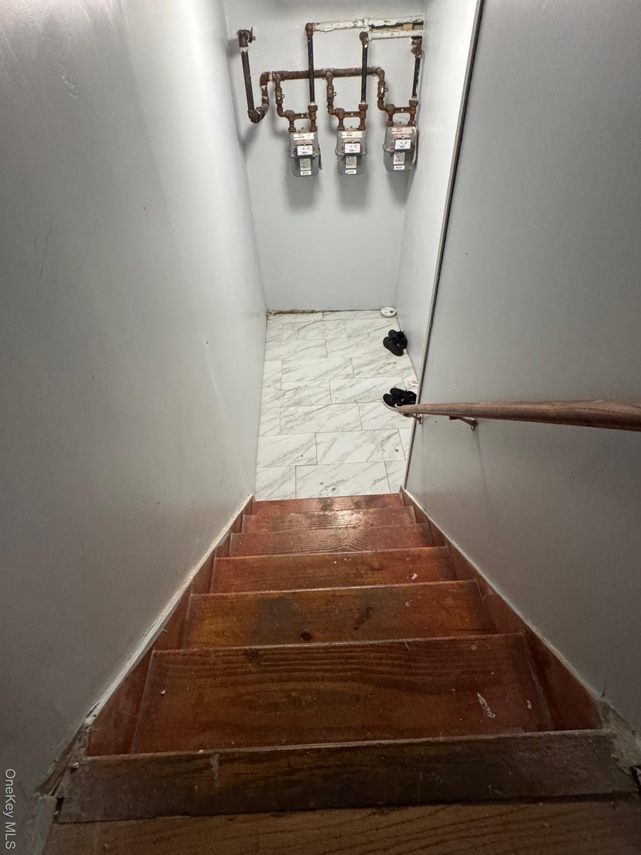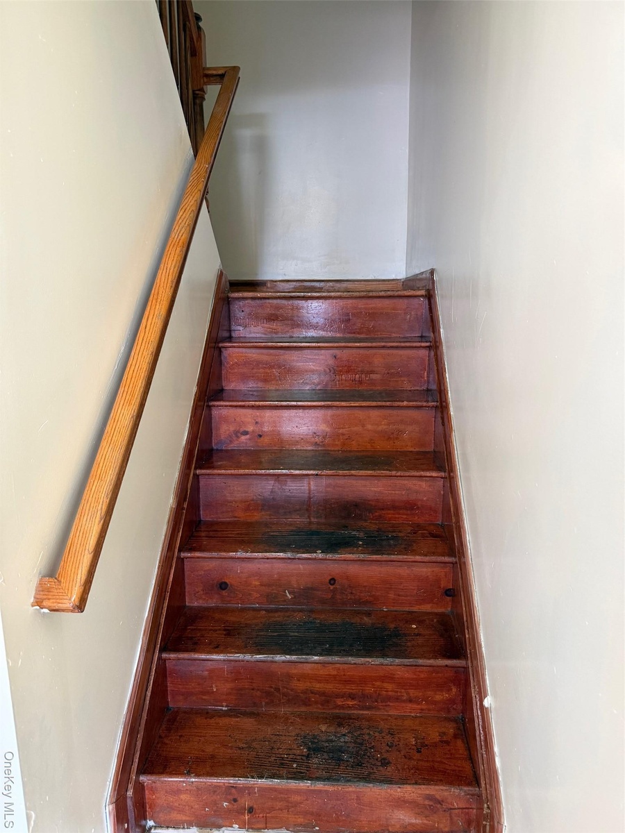 - Staircase featuring hardwood / wood-style floors and baseboards