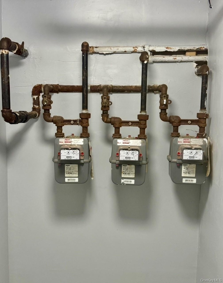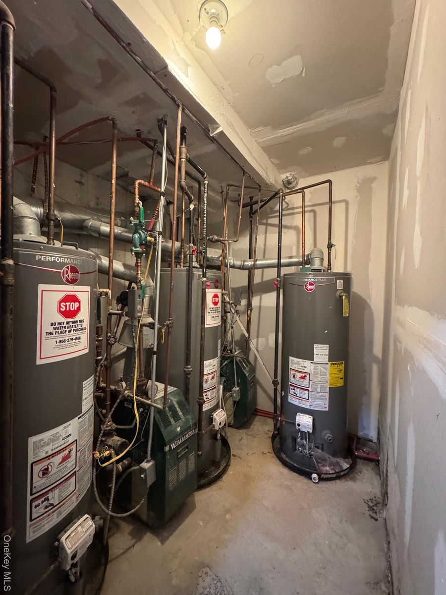- Utilities featuring water heater, gas water heater, and a heating unit