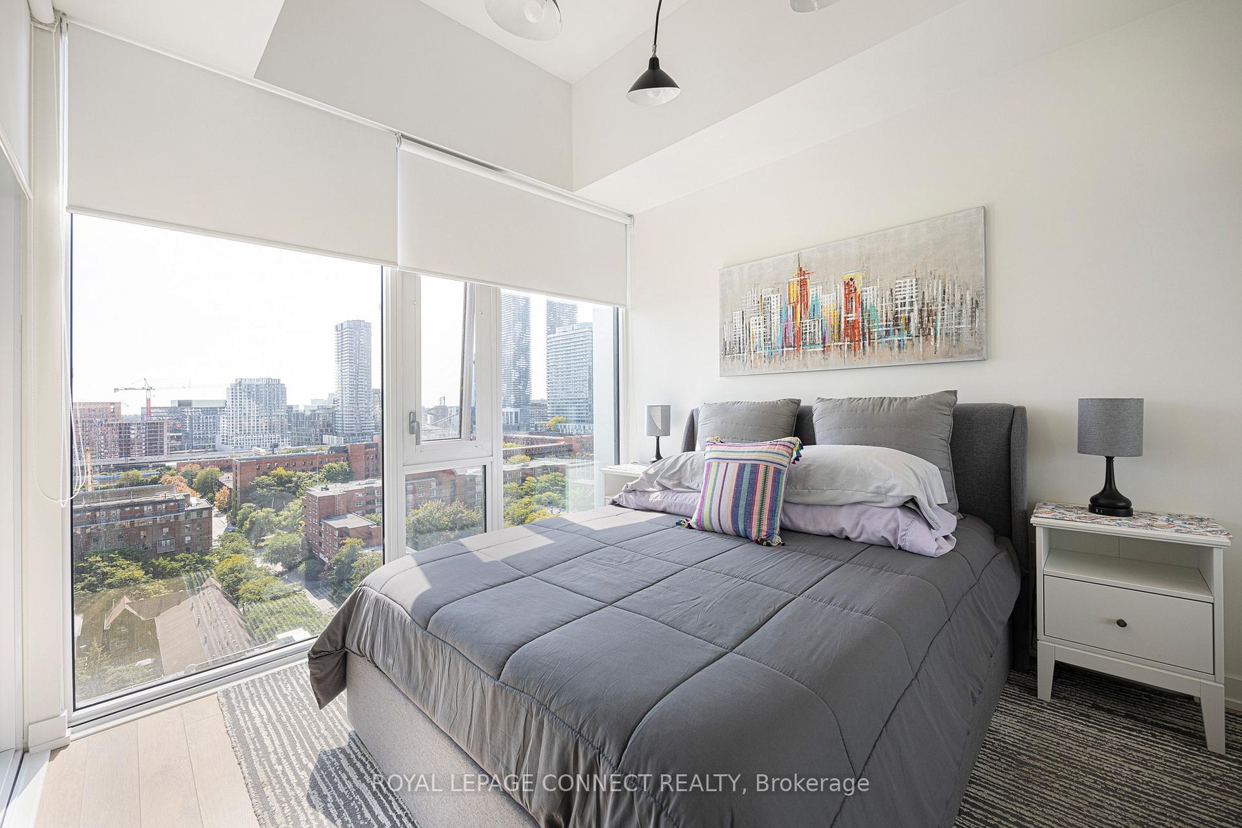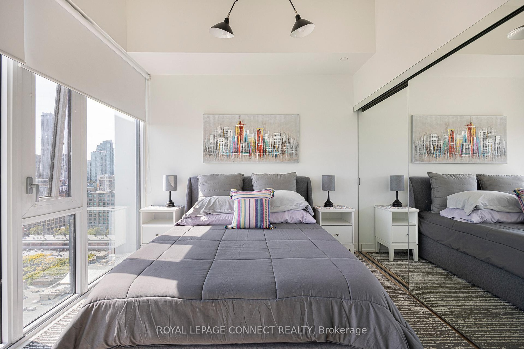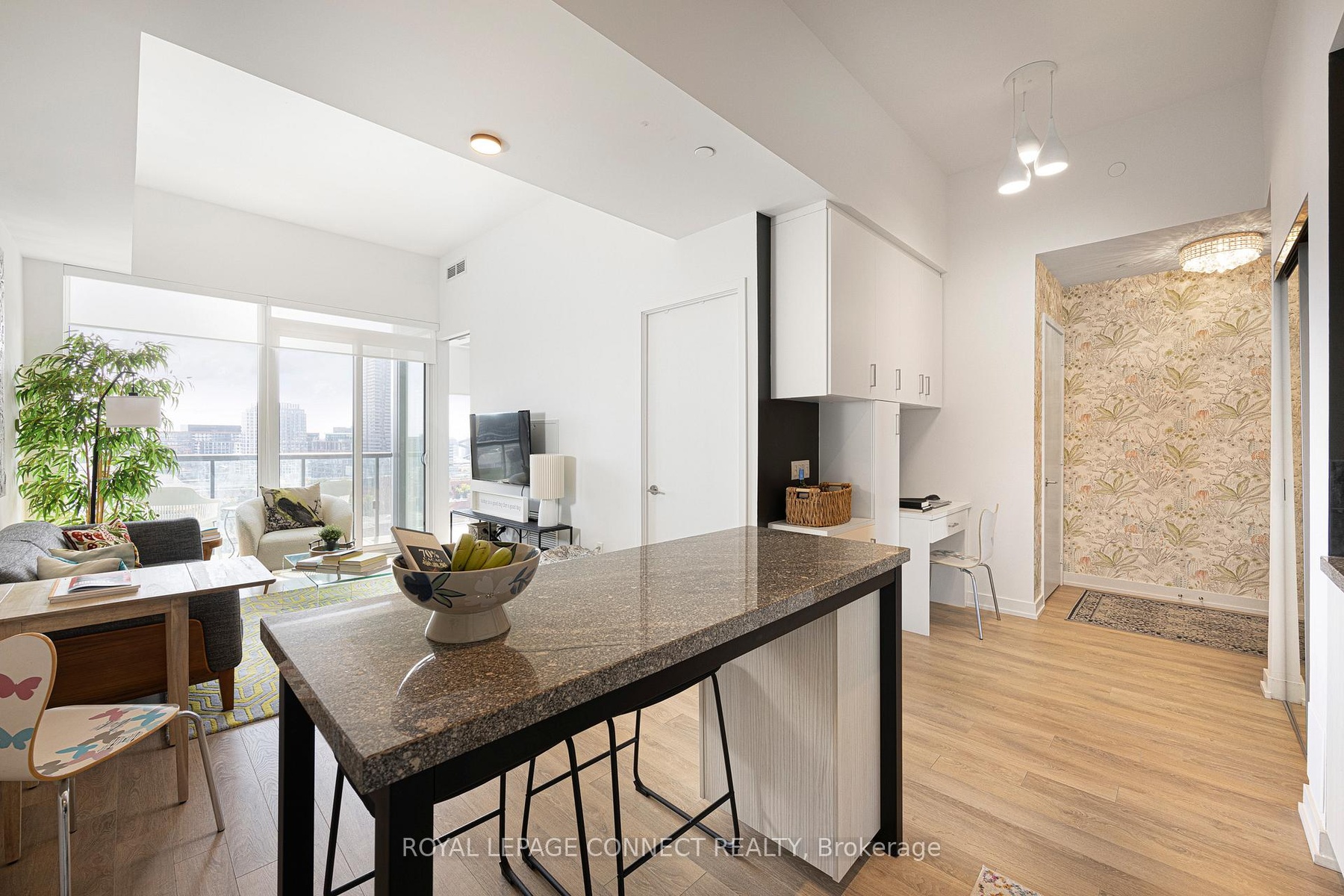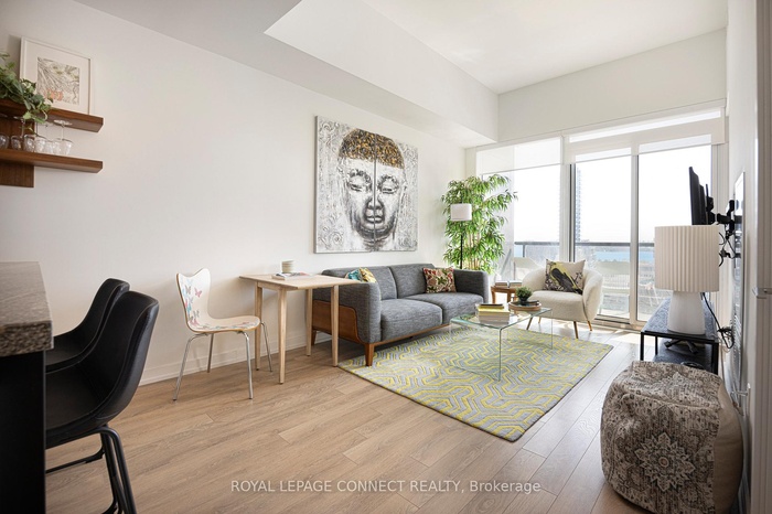 Stunning Executive Furnished Suite with Soaring Ceilings & South-Facing Views in the Heart of St. Lawrence! Live in one of Toronto's most vibrant and historic neighbourhoods - just steps to Union Station, George Brown College, St. Lawrence Market, the Waterfront, the iconic Gooderham Building, St. James Cathedral, the Distillery District, and so much more! This tastefully curated suite features soaring 10' 11" ceilings, upgraded lighting throughout, and floor-to-ceiling windows that flood the space with natural light and showcase breathtaking views of the Downtown skyline and Toronto Islands. The modern kitchen boasts on-trend blonde cabinetry, a granite-topped island and full-size appliances. The bedroom includes a hydraulic bed with underbed storage and a generous closet, while the den is smartly outfitted with a built-in desk and pantry, perfect for working from home. Elegant touches extend from the welcoming foyer to every detail of this beautifully furnished unit. Resort-style amenities include a rooftop pool with city views, dedicated cardio & weight gyms, massive library for WFH days, yoga studio, private theatre, gorgeous party room with BBQ terrace, and more. Locker and internet included. Walk to Metro, No Frills, and Loblaws with ease - this is downtown living without compromise!