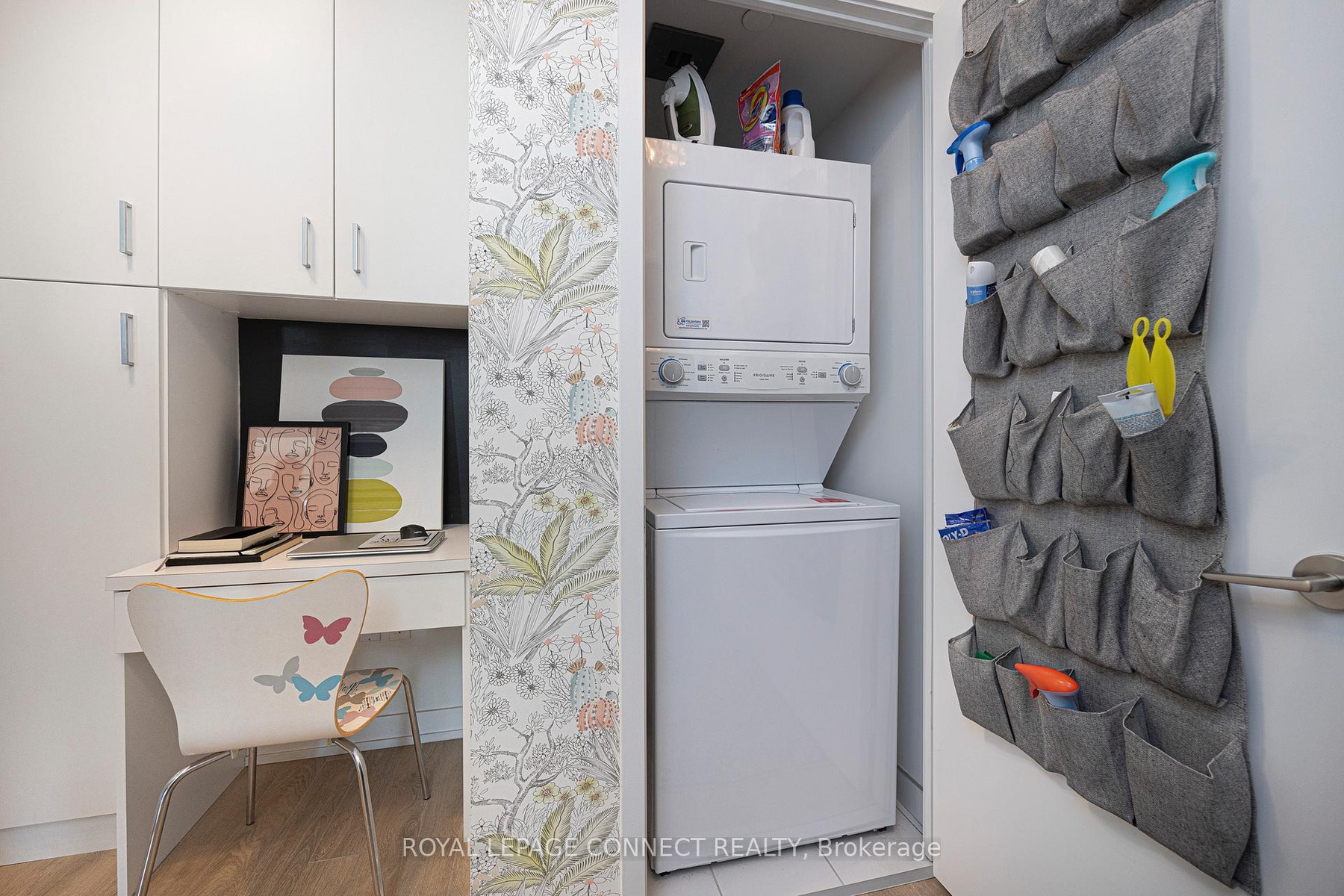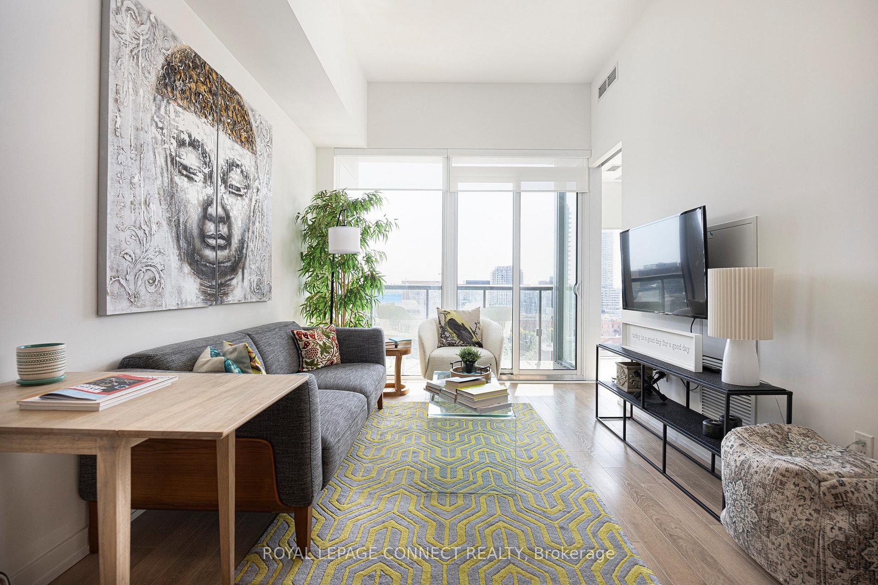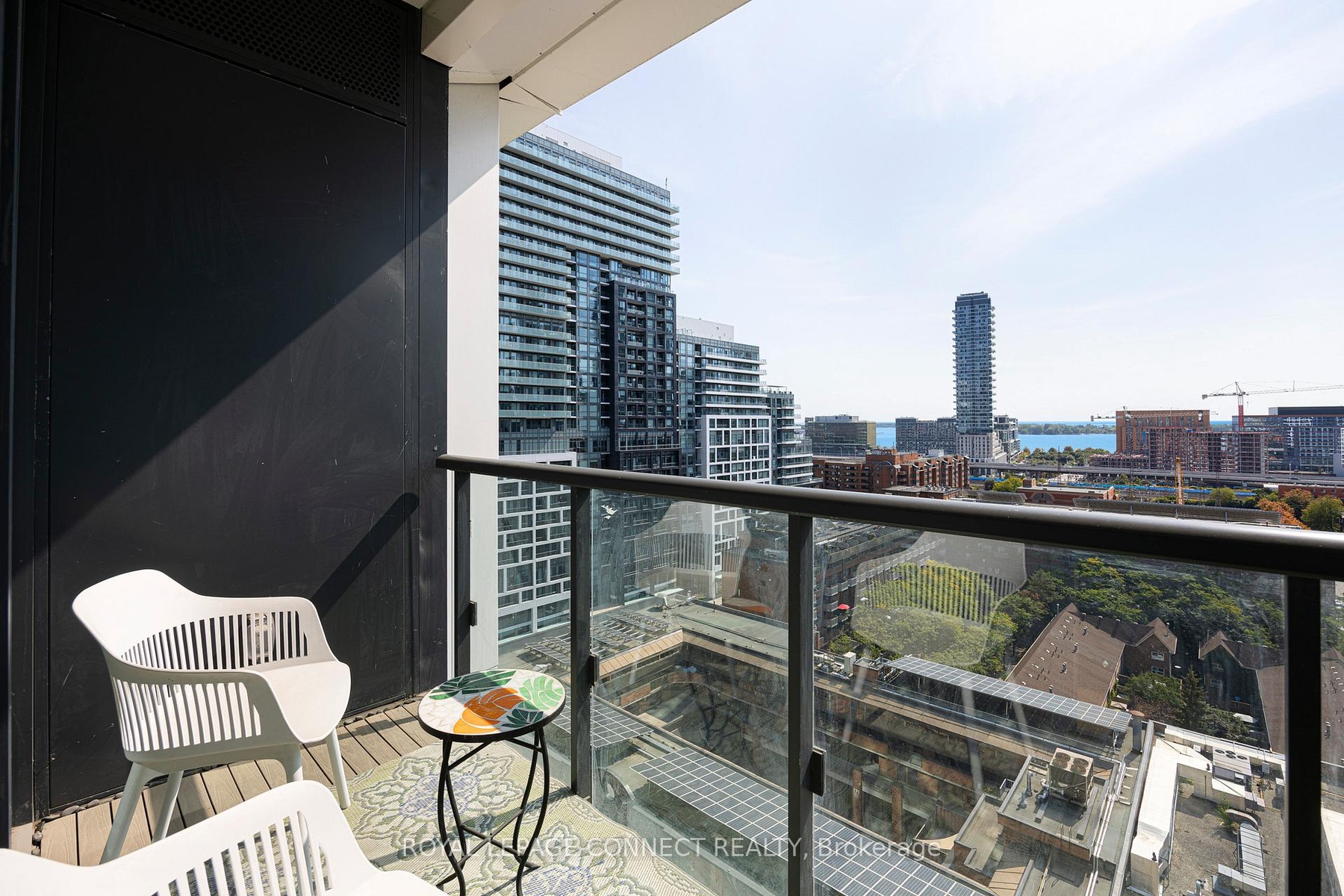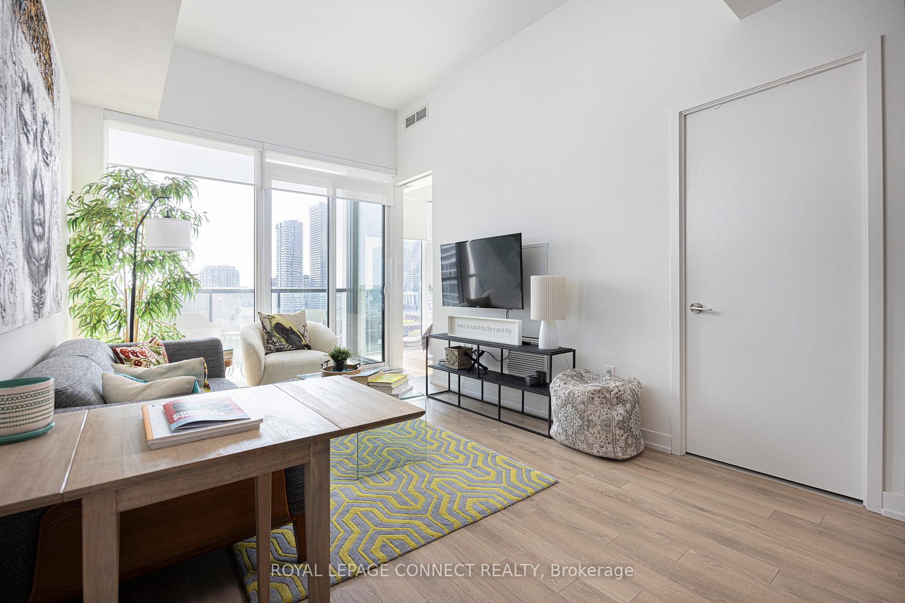 Stunning Executive Furnished Suite with Soaring Ceilings & South-Facing Views in the Heart of St. Lawrence! Live in one of Toronto's most vibrant and historic neighbourhoods - just steps to Union Station, George Brown College, St. Lawrence Market, the Waterfront, the iconic Gooderham Building, St. James Cathedral, the Distillery District, and so much more! This tastefully curated suite features soaring 10' 11" ceilings, upgraded lighting throughout, and floor-to-ceiling windows that flood the space with natural light and showcase breathtaking views of the Downtown skyline and Toronto Islands. The modern kitchen boasts on-trend blonde cabinetry, a granite-topped island and full-size appliances. The bedroom includes a hydraulic bed with underbed storage and a generous closet, while the den is smartly outfitted with a built-in desk and pantry, perfect for working from home. Elegant touches extend from the welcoming foyer to every detail of this beautifully furnished unit. Resort-style amenities include a rooftop pool with city views, dedicated cardio & weight gyms, massive library for WFH days, yoga studio, private theatre, gorgeous party room with BBQ terrace, and more. Locker and internet included. Walk to Metro, No Frills, and Loblaws with ease - this is downtown living without compromise!
