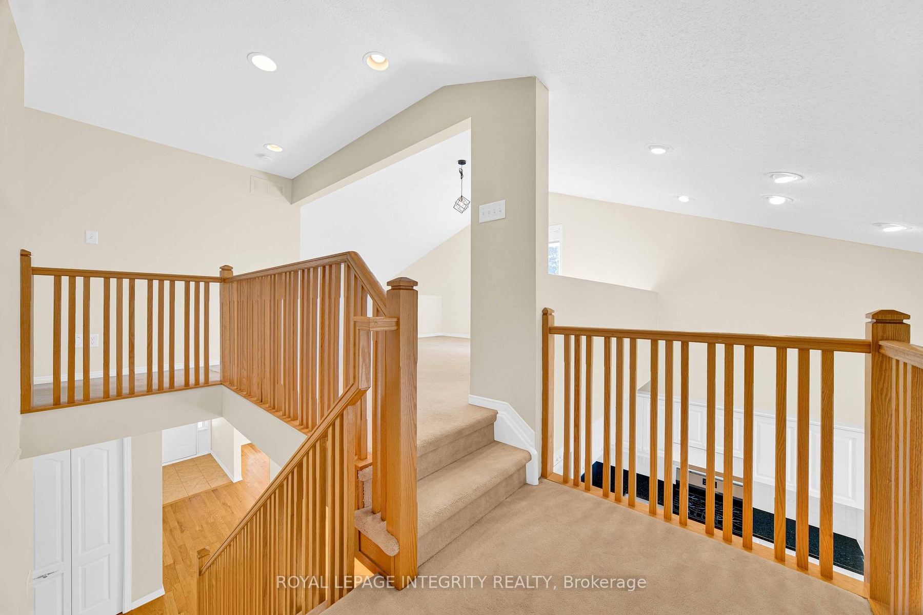 DescriptionWelcome to 2877 Brigham Way! Nestled in the sought-after Upper Hunt Club community near South Keys, this elegant 4-bed, 4-bath detached home with double garage offers style, space, and comfort ideal for multigenerational living. From the moment you enter, the home makes a statement: soaring ceilings and floor-to-ceiling windows flood the living and dining areas with light, creating a warm, airy ambiance. The open-concept layout seamlessly joins the gourmet eat-in kitchen featuring granite countertops, abundant cabinetry, and a breakfast nook with patio-door access to the private, interlocked backyard to the family room, where a gas fireplace invites you to gather and relax. Convenience and grace converge on the main floor, which also includes a generously sized master suite with a luxe ensuite bathroom. Upstairs, two large bedrooms flank a lofted space thats perfect for a home office, reading nook, or children's play area, complemented by a 5-piece bath. The lower level is equally impressive: a guest bedroom, full bath, media/rec room, a home gym or office area, and thoughtfully finished storage round out this level. Every corner has been crafted with style and practicality in mind. Located on a corner lot close to parks, schools, trails, transit, and all amenities! Vacant and easy to show! White sofas and side table are included.Amenities- Auto Garage Door Remote