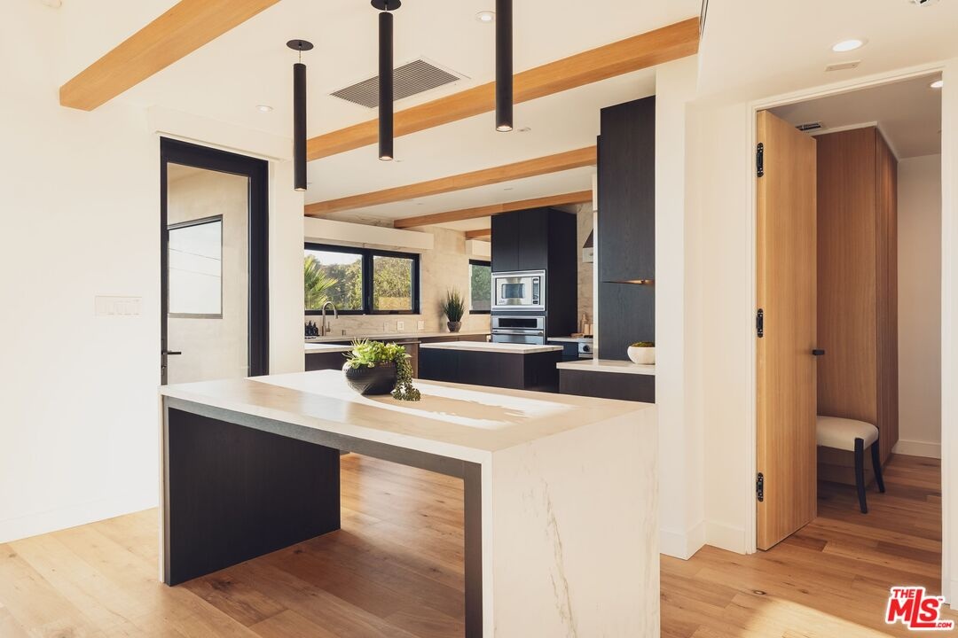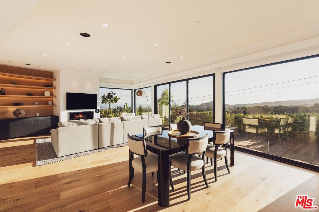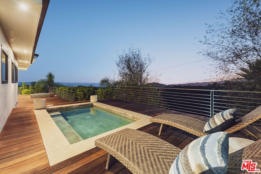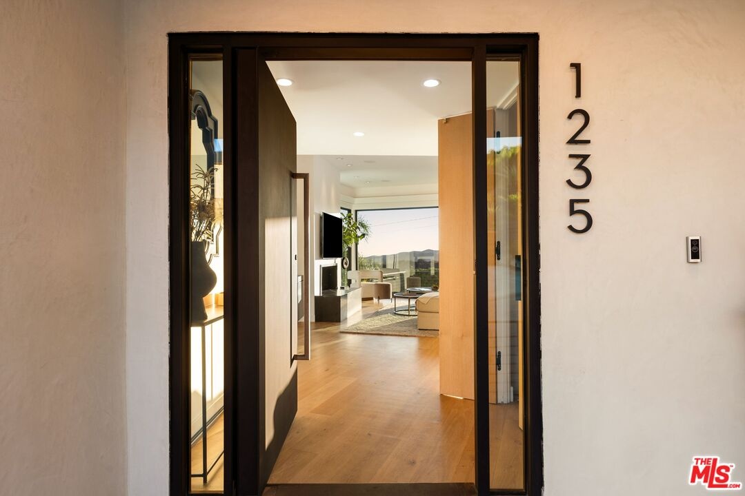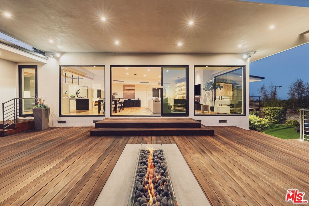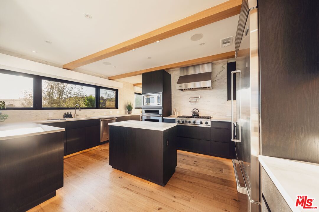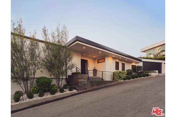 Tucked away in the hills of Kenter Canyon, this single-story modern compound in the exclusive Crestwood Estates exudes effortless California cool. Reimagined with sleek design, sophisticated finishes, and a seamless indoor-outdoor flow, it's the ultimate private retreat for elevated living. Step inside and feel the calm as a wide-open floor plan framed by walls of glass dissolves into lush treetops and canyon views that stretch all the way to the ocean. The living room stuns with a sculptural fireplace, custom built-ins, and moody ambient lighting that sets the tone. At the heart of the home, a dedicated dining area flows into a showpiece chef's kitchen anchored by a massive island perfect for cooking, entertaining, or late-night conversations. Warm wood-beamed ceilings, double prep stations, Viking appliances, a wine fridge, and tailored cabinetry give the space a vibe that's both organic and refined. The primary suite is pure serenity with floor-to-ceiling sliders opening to panoramic canyon and ocean vistas, while the spa-like bath features dual vanities, intricate tilework, and a frameless glass shower with dual rainfall heads. Two additional ensuite bedrooms offer guests a five-star experience. Outside, the magic continues with expansive decks, a plunge pool, outdoor fire pit, grassy lounge area, and curated landscaping that create the ultimate year-round escape. This is where you host, unwind, and disappear from it all while staying minutes from the Brentwood Country Mart, the ocean, and everything the Westside has to offer.