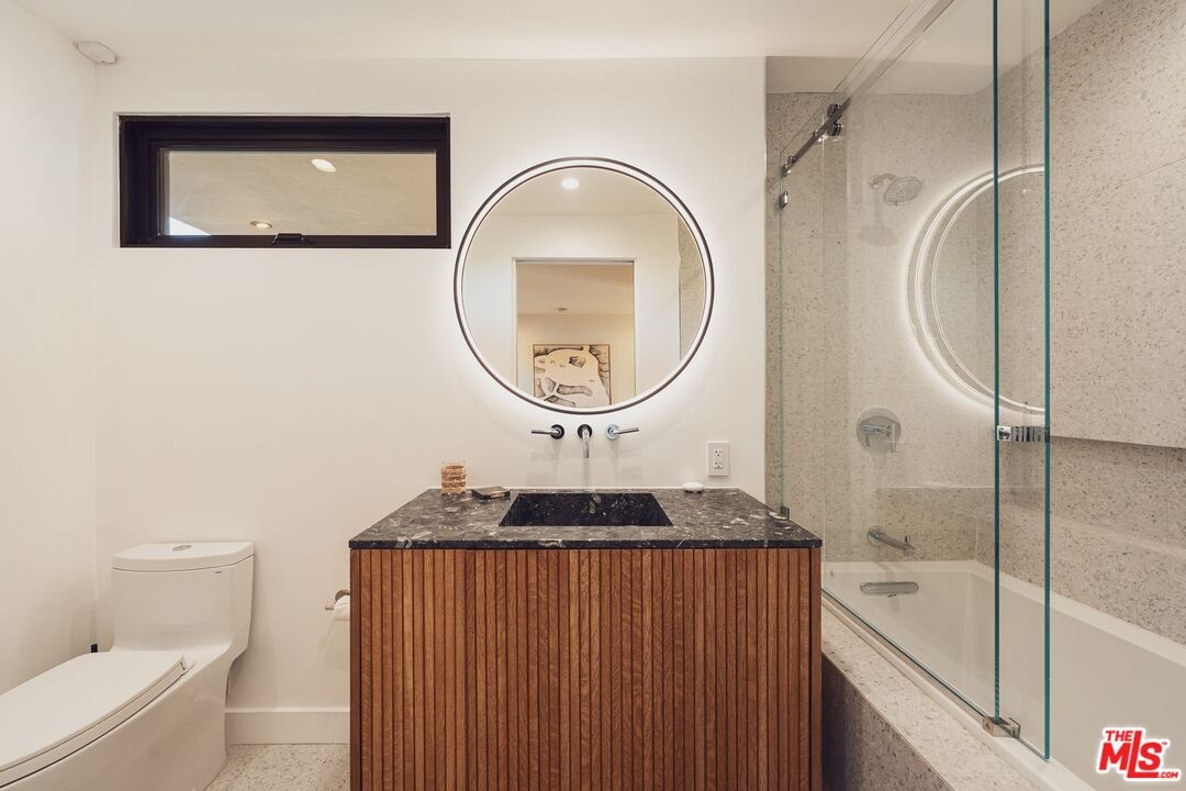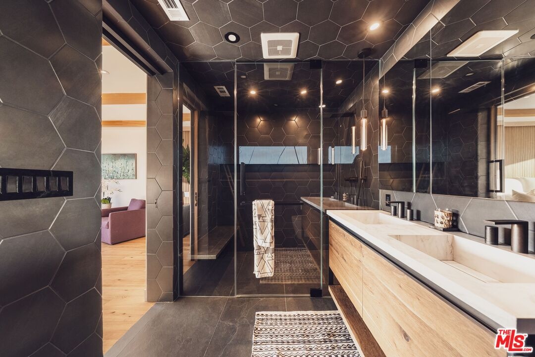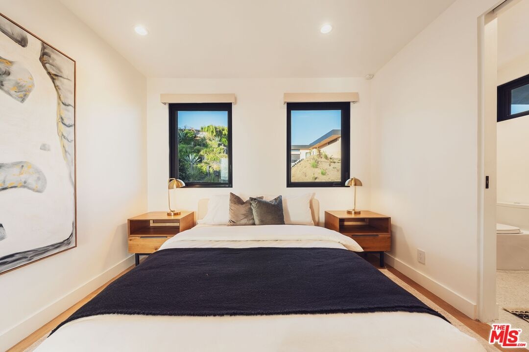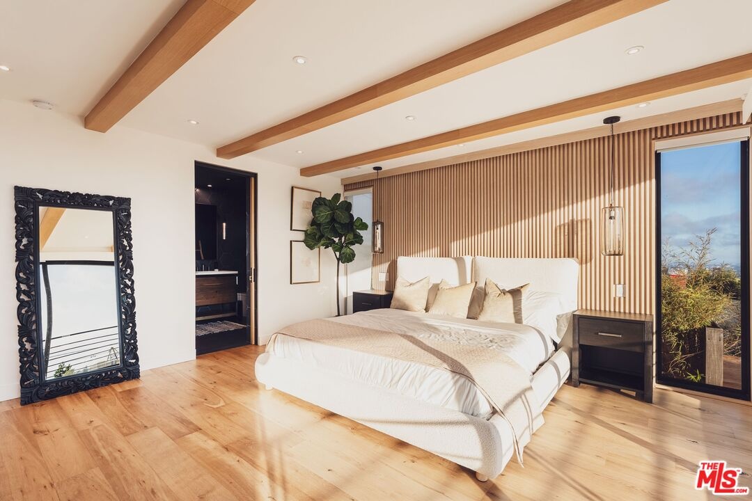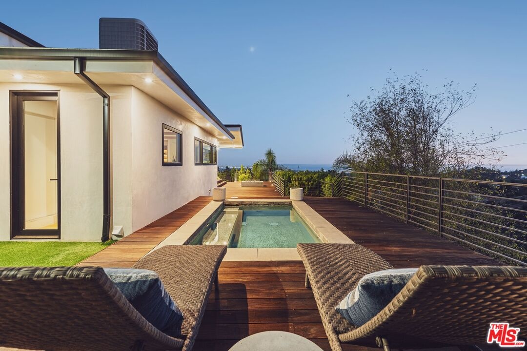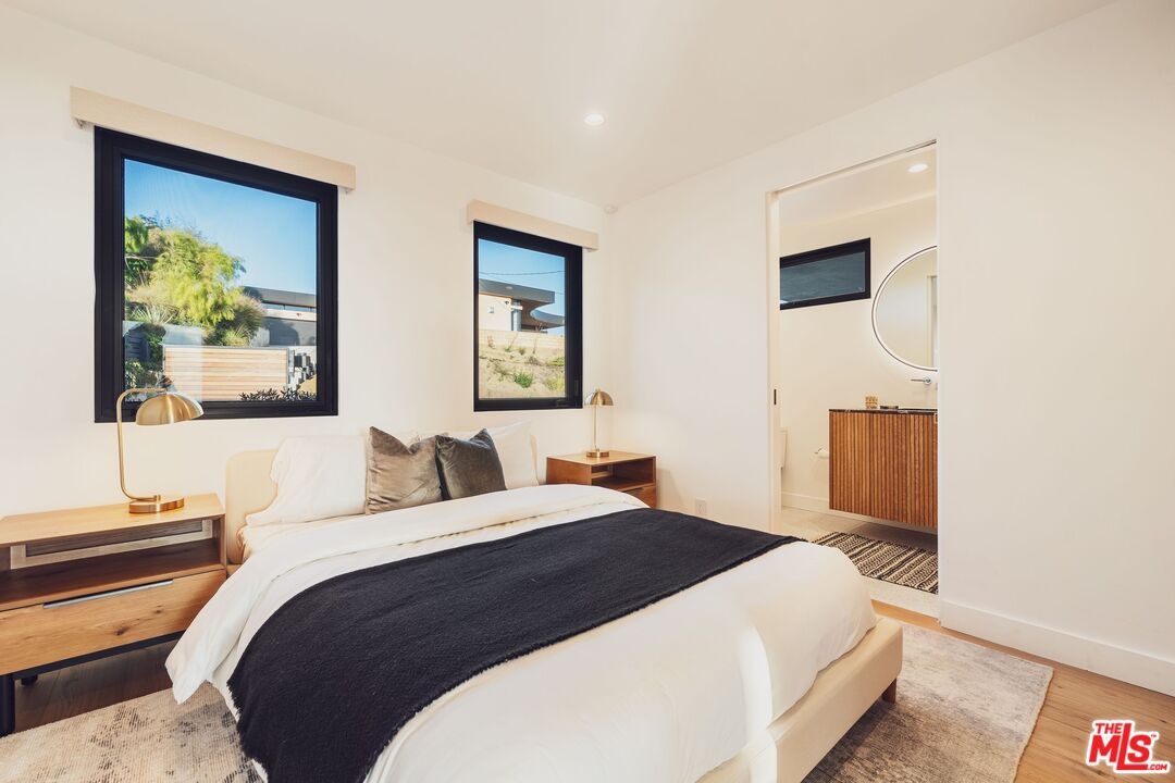 Tucked away in the hills of Kenter Canyon, this single-story modern compound in the exclusive Crestwood Estates exudes effortless California cool. Reimagined with sleek design, sophisticated finishes, and a seamless indoor-outdoor flow, it's the ultimate private retreat for elevated living. Step inside and feel the calm as a wide-open floor plan framed by walls of glass dissolves into lush treetops and canyon views that stretch all the way to the ocean. The living room stuns with a sculptural fireplace, custom built-ins, and moody ambient lighting that sets the tone. At the heart of the home, a dedicated dining area flows into a showpiece chef's kitchen anchored by a massive island perfect for cooking, entertaining, or late-night conversations. Warm wood-beamed ceilings, double prep stations, Viking appliances, a wine fridge, and tailored cabinetry give the space a vibe that's both organic and refined. The primary suite is pure serenity with floor-to-ceiling sliders opening to panoramic canyon and ocean vistas, while the spa-like bath features dual vanities, intricate tilework, and a frameless glass shower with dual rainfall heads. Two additional ensuite bedrooms offer guests a five-star experience. Outside, the magic continues with expansive decks, a plunge pool, outdoor fire pit, grassy lounge area, and curated landscaping that create the ultimate year-round escape. This is where you host, unwind, and disappear from it all while staying minutes from the Brentwood Country Mart, the ocean, and everything the Westside has to offer.