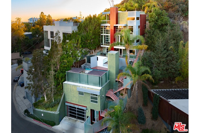 Iconic Hollywood Dell modern masterpiece. Designed by architect, Jay Vanos, with wall murals by R & B singer, artist & previous owner, Chris Brown. Nestled in an enchanting canyon cul-de-sac, the 2,800 sq. ft. home offers total privacy in close proximity to the 101 Fwy, major studios & Hollywood nightlife. Walls of glass along with soaring ceilings define interior/exterior spaces creating a breathtaking layout. An elevator provides access to 3 bedrooms, 3 bathrooms, multiple living areas, Boffi kitchen & baths with Bracht fixtures & a stunning primary suite featuring a large wet room with shower massage system & freestanding red tub. Enjoy resort-style living with beach-style saltwater pool & spa, waterfalls, lap swim jets, cabanas set in sand, a spectacular custom LED site lighting & colored LED light show as well as outdoor projector & screen, surround sound system, fire pits, entry/security system & cameras. Lot size 7.495 sq. ft.