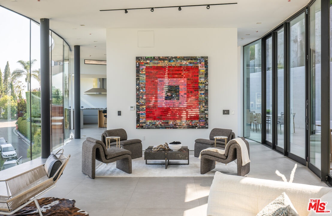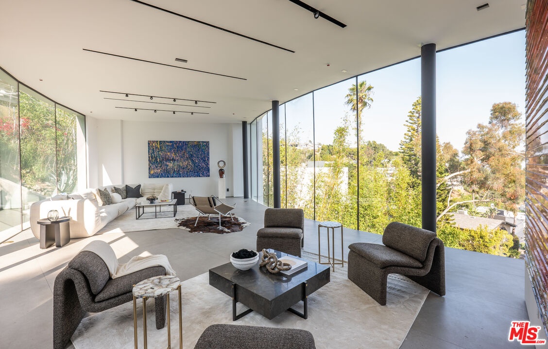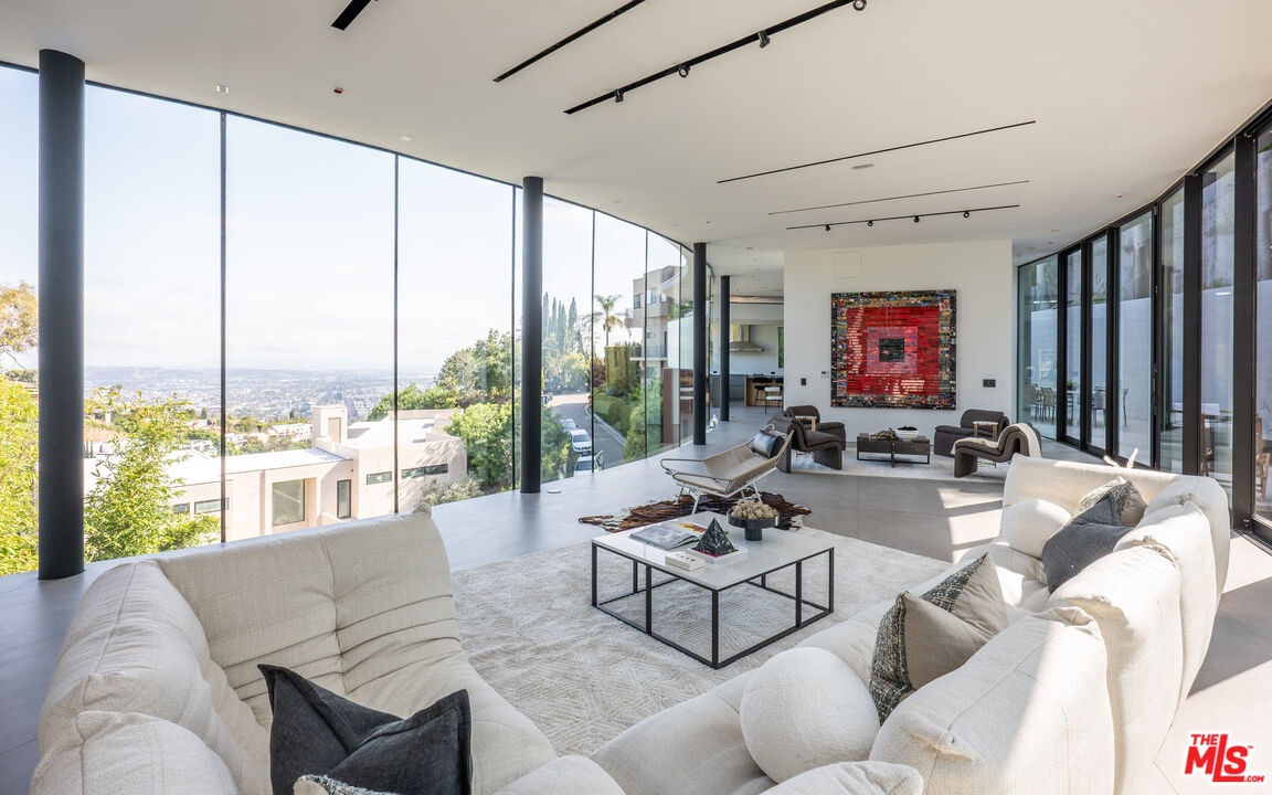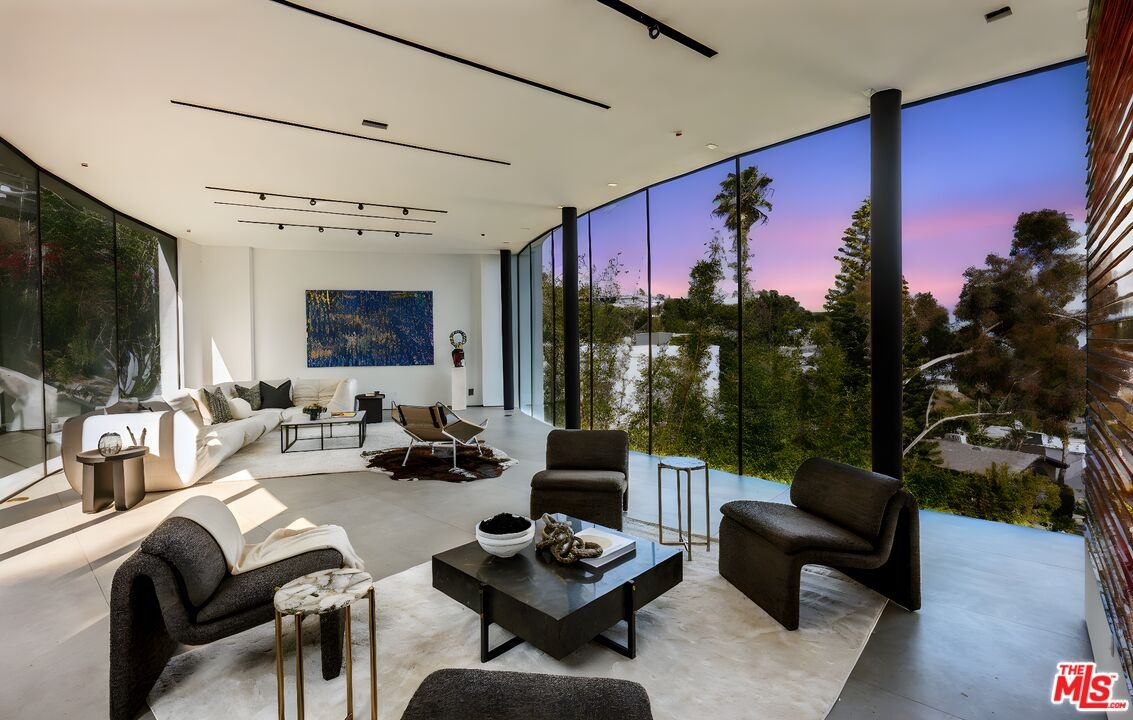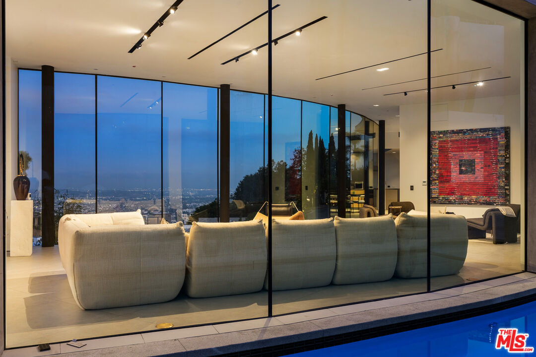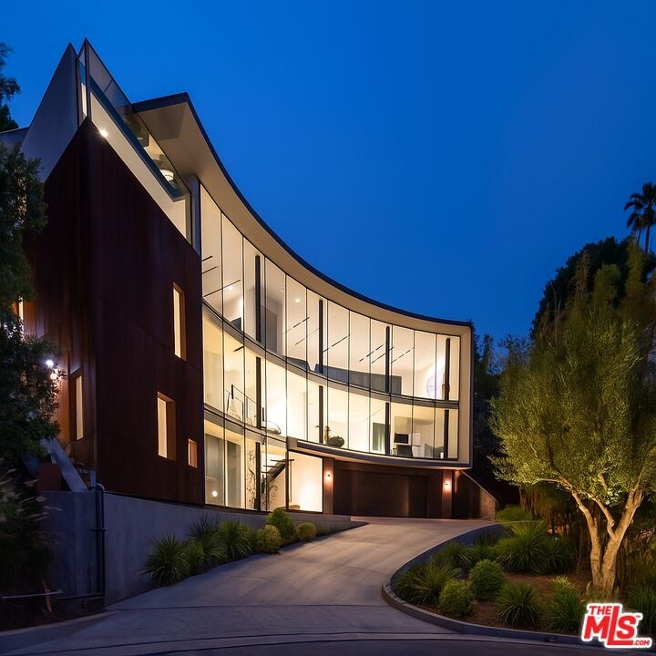 Introducing "The Curve on Thrush", a newly constructed architectural gem nestled in the exclusive Bird Streets above the Sunset Strip. Designed by the award-winning Tag Front Architects, whose portfolio includes some of the most celebrated modern residences in Los Angeles, this sculptural glass home stands as a bold expression of art, architecture, and lifestyle at the highest level. With its sweeping curved glass facade and striking steel form, "The Curve on Thrush" is more than a residence, it is a statement piece. Elevated above the city and surrounded by multi-million dollar estates, it offers absolute privacy while being moments from the very best of Los Angeles. From world-class dining and high-fashion boutiques to iconic nightlife, this home places you at the intersection of Sunset Strip energy, West Hollywood culture, and Beverly Hills luxury.Inside, the interiors unfold with dramatic scale and seamless flow. Soaring ceilings, a floating glass staircase, and expansive open-plan living areas create a gallery-like experience designed for both grand entertaining and intimate living. Every element reflects the architectural precision and material mastery that define Tag Front's work.Three luxurious bedroom suites are appointed with spa-grade finishes and filled with natural light. A private theater, elevator access, and full smart home integration elevate the living experience even further. Outdoors, a sleek pool and spa are framed by drought-tolerant landscaping, blending sustainability with serenity.A rare offering in one of Los Angeles' most coveted enclaves, The Curve on Thrush is not just a home, it is a lifestyle, a legacy, and a landmark of contemporary design.