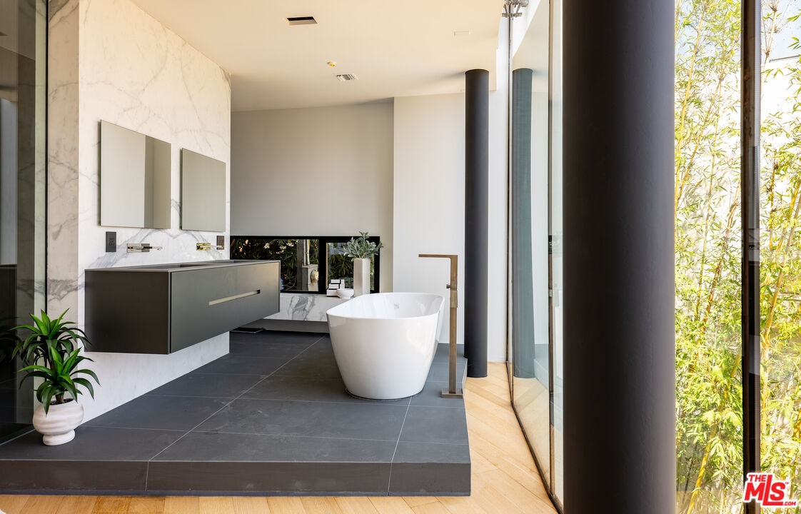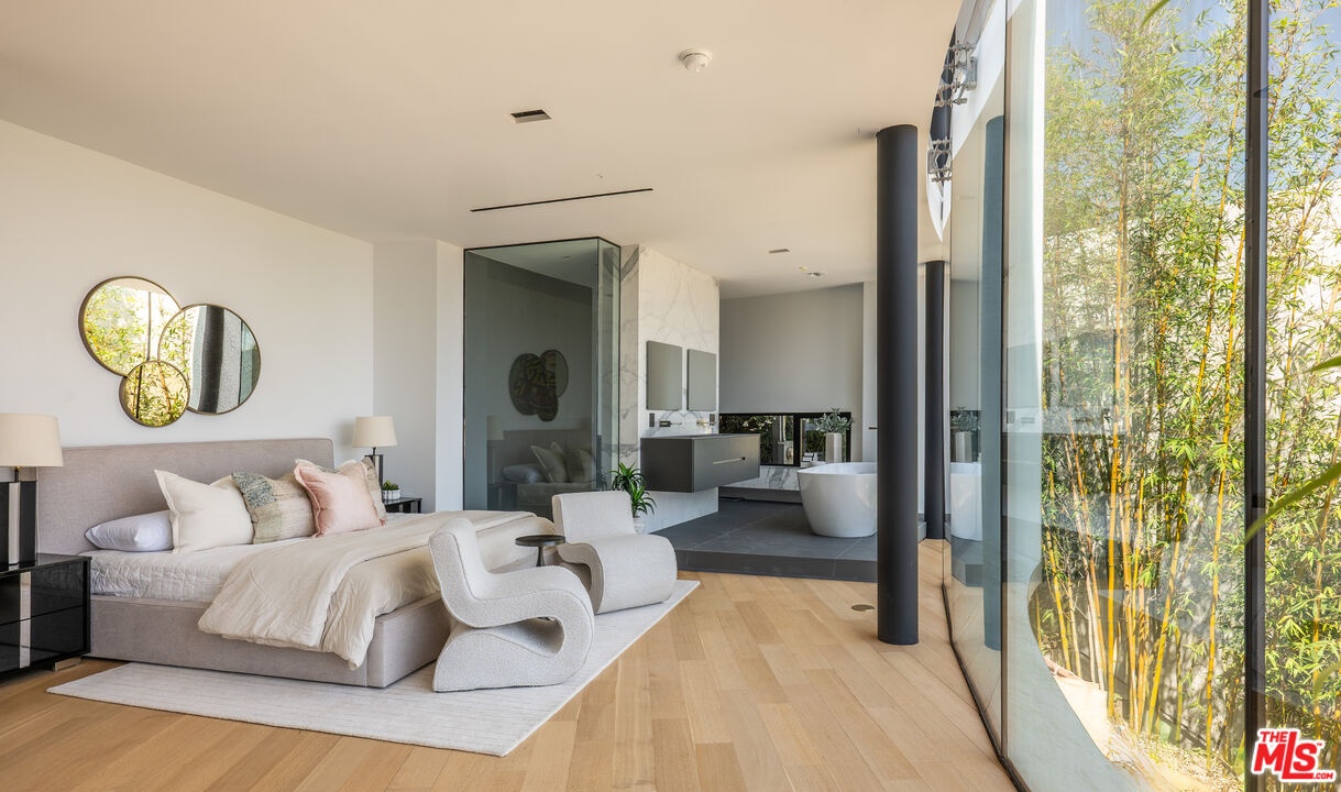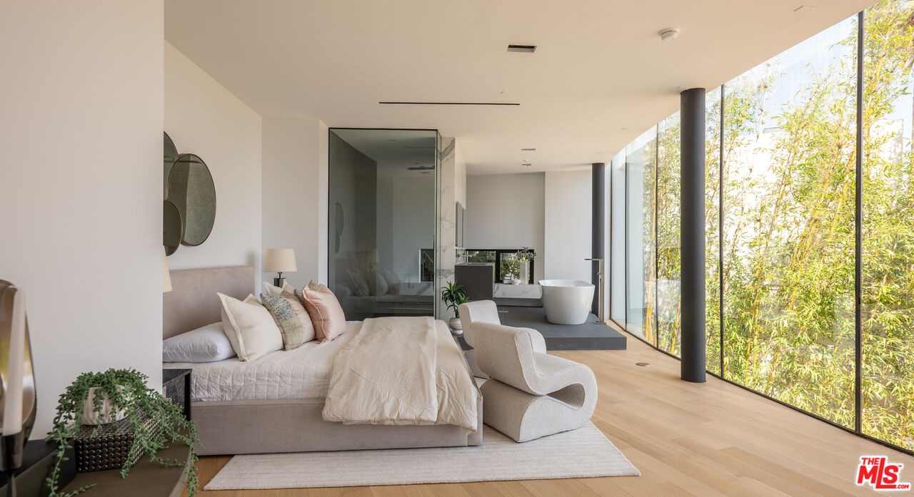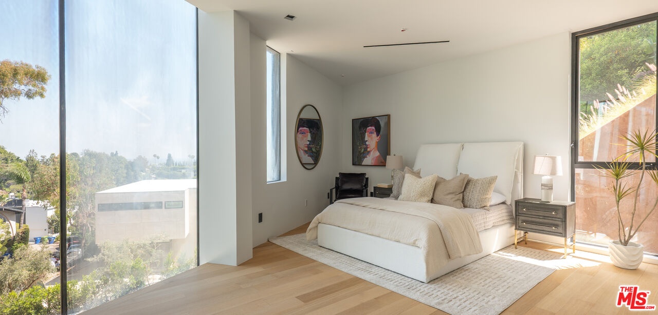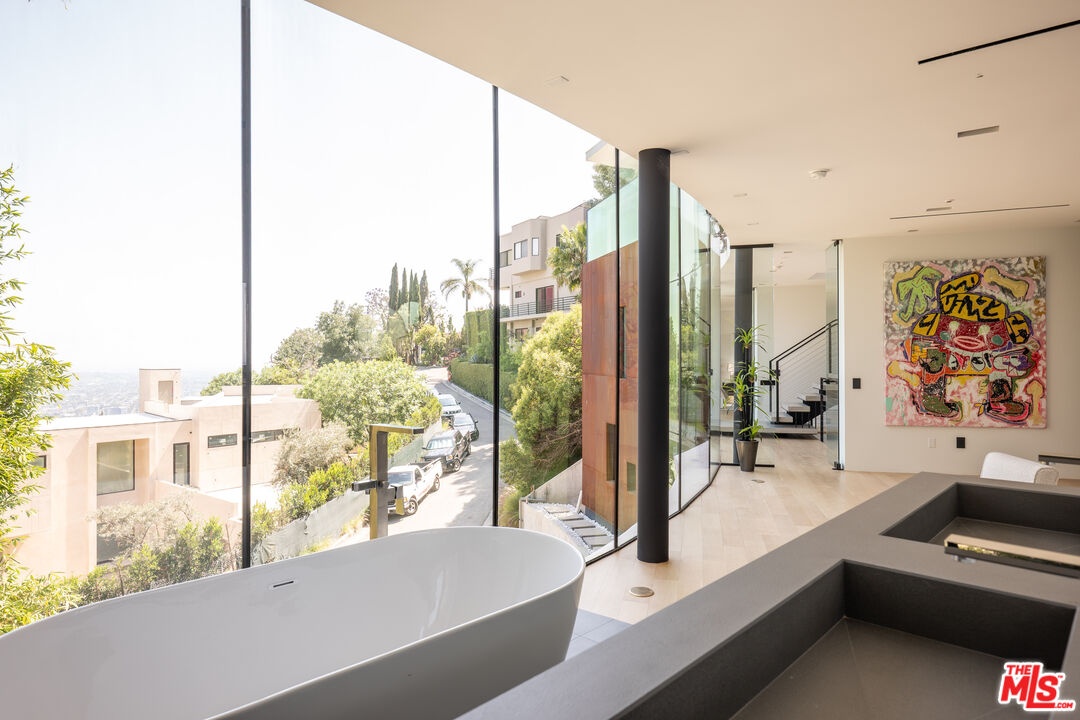 Introducing "The Curve on Thrush", a newly constructed architectural gem nestled in the exclusive Bird Streets above the Sunset Strip. Designed by the award-winning Tag Front Architects, whose portfolio includes some of the most celebrated modern residences in Los Angeles, this sculptural glass home stands as a bold expression of art, architecture, and lifestyle at the highest level. With its sweeping curved glass facade and striking steel form, "The Curve on Thrush" is more than a residence, it is a statement piece. Elevated above the city and surrounded by multi-million dollar estates, it offers absolute privacy while being moments from the very best of Los Angeles. From world-class dining and high-fashion boutiques to iconic nightlife, this home places you at the intersection of Sunset Strip energy, West Hollywood culture, and Beverly Hills luxury.Inside, the interiors unfold with dramatic scale and seamless flow. Soaring ceilings, a floating glass staircase, and expansive open-plan living areas create a gallery-like experience designed for both grand entertaining and intimate living. Every element reflects the architectural precision and material mastery that define Tag Front's work.Three luxurious bedroom suites are appointed with spa-grade finishes and filled with natural light. A private theater, elevator access, and full smart home integration elevate the living experience even further. Outdoors, a sleek pool and spa are framed by drought-tolerant landscaping, blending sustainability with serenity.A rare offering in one of Los Angeles' most coveted enclaves, The Curve on Thrush is not just a home, it is a lifestyle, a legacy, and a landmark of contemporary design.