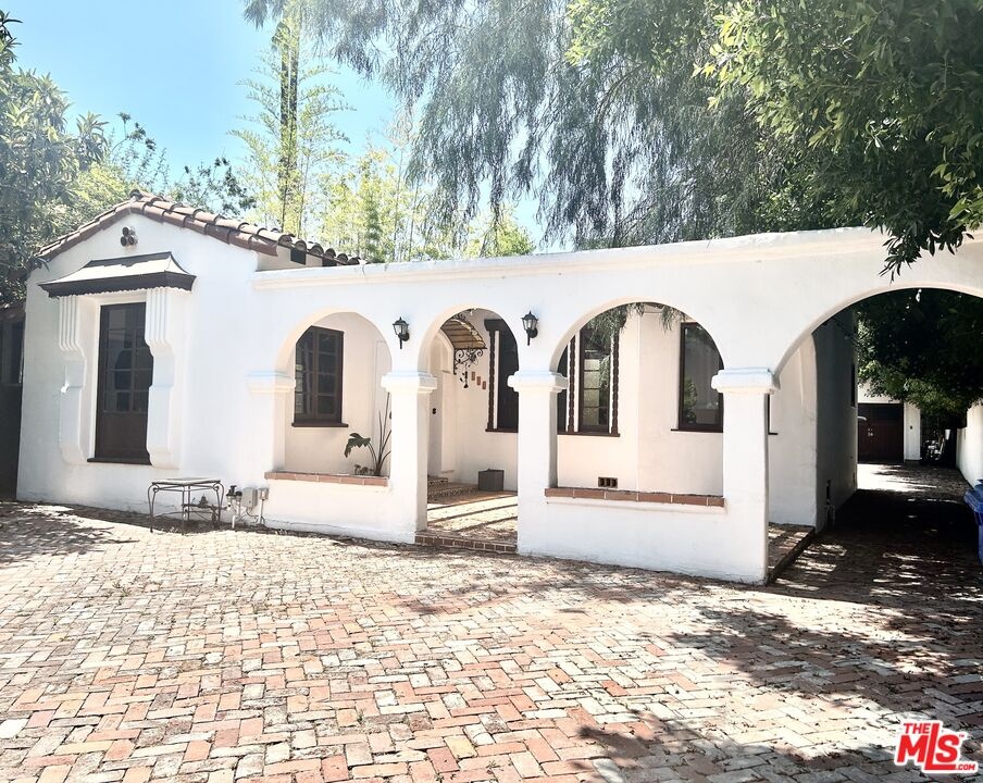 Introducing a Spanish home, in the heart of the city! This property is composed of two separate structures- one in the front and one in the back. The Front Home features 3 bedrooms and 3 bathrooms, one story. The separated structure nested in the back of the lot features 2 expansive bedrooms, 2-1/2 bathrooms, 2 stories tall. Spacious front yard, elegant patio & luscious backyard garden. Private and secure- Tall Block walls and soaring high natural hedges surrounding the property. Stainless steel appliances, Granite and tile in the kitchen. Hardwood floors throughout. Fireplace and big windows in the living room. Separate dining room with historic beams in the ceiling. Central A/C & heating. Ideal for Roommates that want to live comfortably! Location Location Location!!! Walking distance to local cafes, shops, Beverly Center and the Grove. Tenants pay all utilities and verify all square footage to their satisfaction.