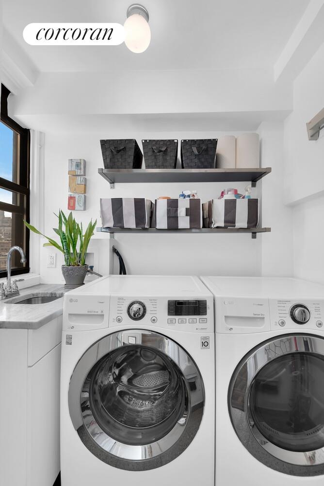 DescriptionApartment 9AB at 107 West 86th Street is a rare 7-room residence that combines prewar elegance with a sleek, modern renovation. This sprawling, bright, 3-bedroom, 2.5-bath home offers the space, light, and style that makes Upper West Side living so coveted; all within a premier full-service co-op. At the heart of the home is a dramatic 30-foot open expanse where living, dining, and an open chef's kitchen flow together in one inviting space which is ideal for entertaining or relaxing at home. Sunlight floods in through oversized south-facing windows, framing blue-sky and skyline views. Renovated with top-quality materials throughout, the home balances modern comforts with the elegance of original prewar details including high-beamed ceilings, pristine crown, baseboard, and picture frame moldings, hardwood floors, and French doors. Contemporary luxuries include generous fitted closet storage, top-line appliances, windowed laundry room with full-size LG washer and dryer and sink, custom designed home office with a pocket door, and recently renovated marble baths.
