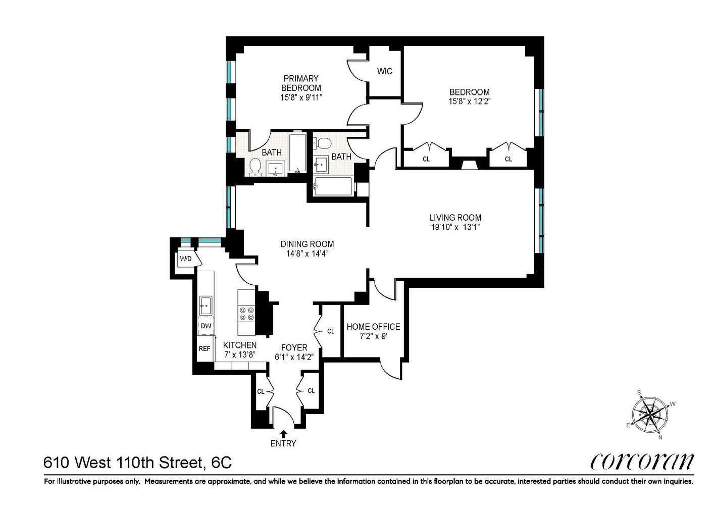 DescriptionGracious pre-war condo living on the Upper West Side. This gorgeous 2 Bedroom + Home Office / 2 Bathroom condominium is the perfect combination of pre-war elegance and modern convenience. Enter into the foyer which leads to the formal, windowed dining room perfect for entertaining. Adjacent to this is the oversized, sun-soaked living room which faces north over 110th Street/Cathedral Parkway and has a glimpse of both Riverside Park and the Hudson River. The windowed chef's kitchen has fantastic counter and storage space and top of the line appliances (Sub-zero refrigerator, Bosch cooktop, oven and dishwasher). There are two large bedrooms both of which have ample room for a king bed and both with terrific closet space. The marble-clad bathrooms each feature pedestal sinks and soaking tubs. Additional features of this lovely home include stunning herringbone floors in impeccable condition, central HVAC throughout the entire apartment, in-unit vented washer/dryer, beautiful crown moldings, high ceilings and a bonus space which is the perfect home office, sitting or play room. All of this in a full-service, doorman condominium just a stone's throw from Riverside Park, Columbia University and all of the wonderful restaurants, cafes and shopping the Upper West Side has to offer. The building has a live-in resident manager, gym, party/event room, bike storage and a stunning rooftop deck. Note: there is an assessment of $382.50/mo. through 2029.AmenitiesBike Room; Courtyard; Fitness Room; Laundry Room; Party Room;- Washer / Dryer