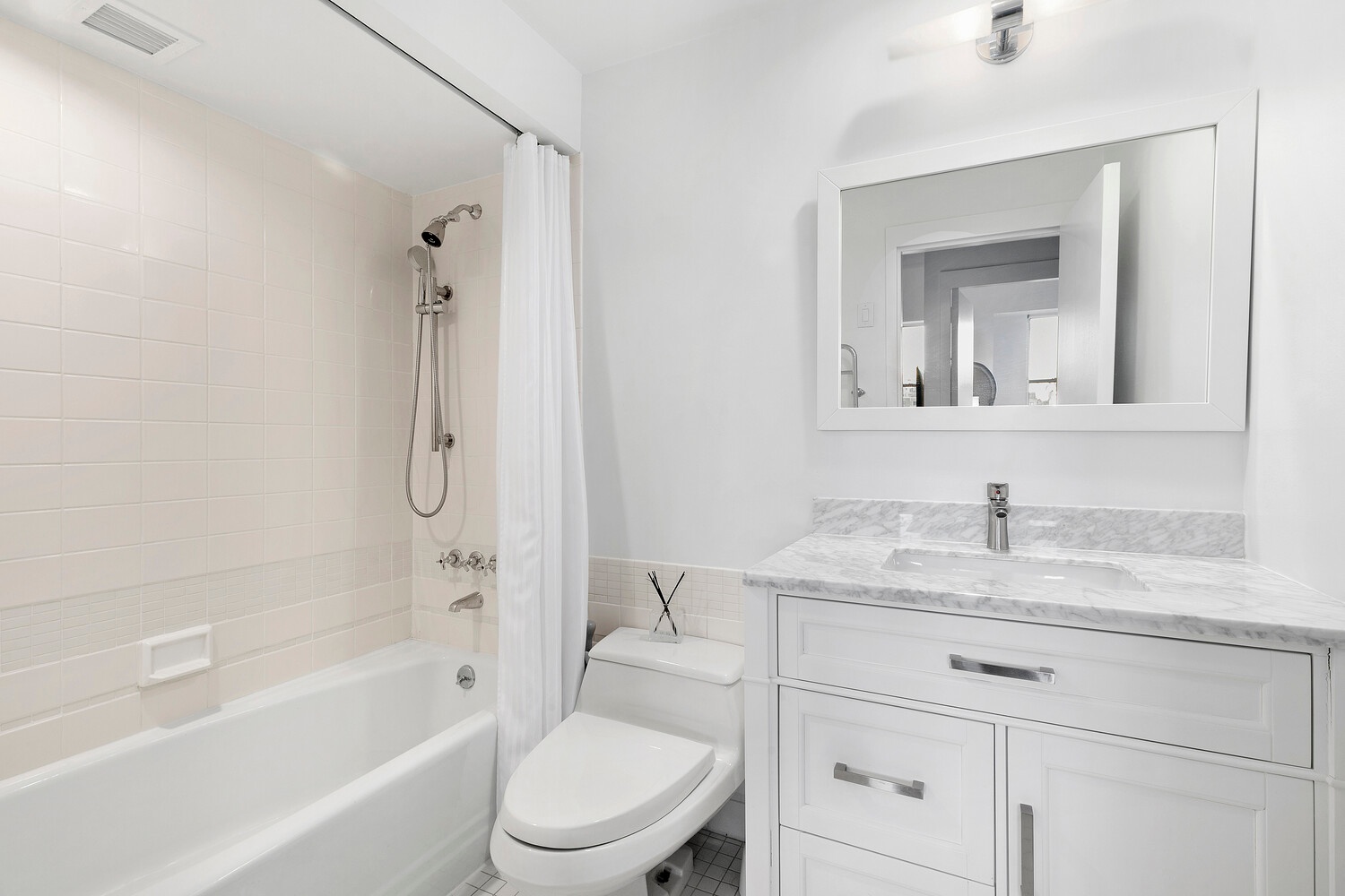 Graced with two private balconies and open city views, this charming 2-bedroom, 2-bathroom corner rental spreads a clean, modern aesthetic across a 1,200-square-foot pre-war layout saturated with natural light.