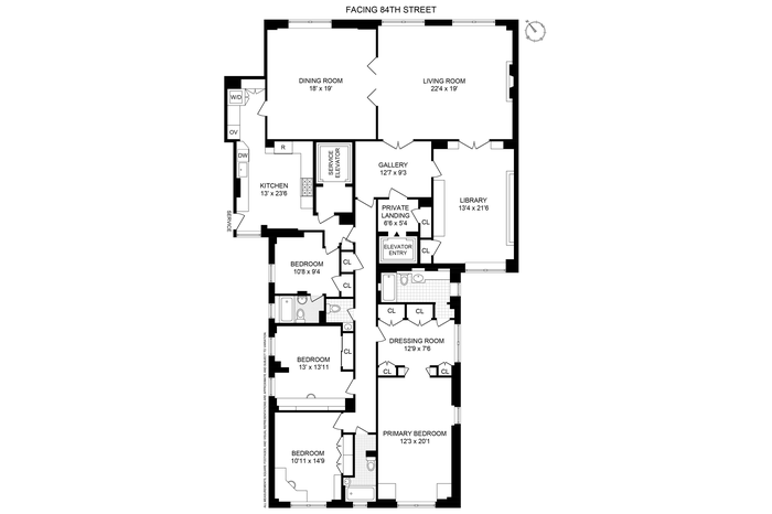 Welcome to Residence 4E at 993 Park Avenue, a grand display of pre-war elegance situated in one of Manhattan's finest turn of the century white-glove cooperatives. A private elevator landing opens up into the large entrance gallery that connects the different wings of this expansive home. The oversized living room, with a wood burning fireplace, overlooks 84th street. The adjoining library boasts wall-to-wall built in bookcases and storage and is filled with light from south-facing windows. The formal dining room is generous in size and features elegant marble flooring. The substantial eat-in, windowed kitchen is complete with a suite of high-end stainless-steel appliances including a Wolf range, Subzero refrigerator and houses a washer and dryer.