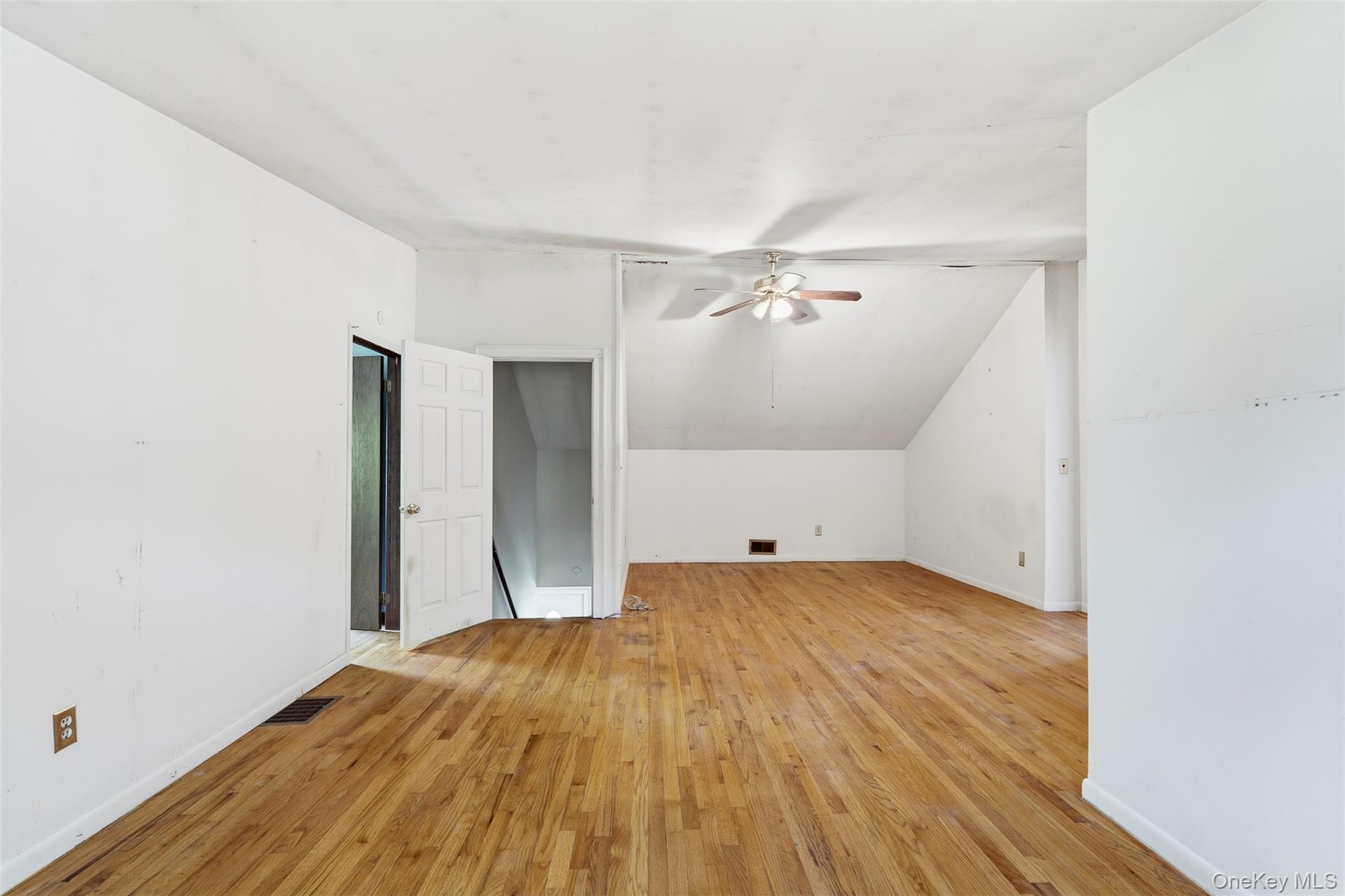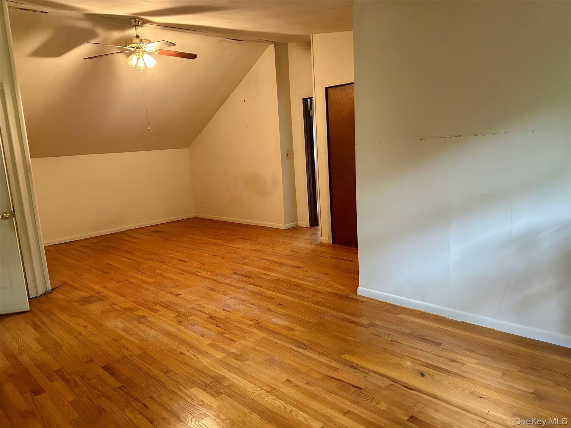 - Bonus room with light wood-style floors, vaulted ceiling, and ceiling fan