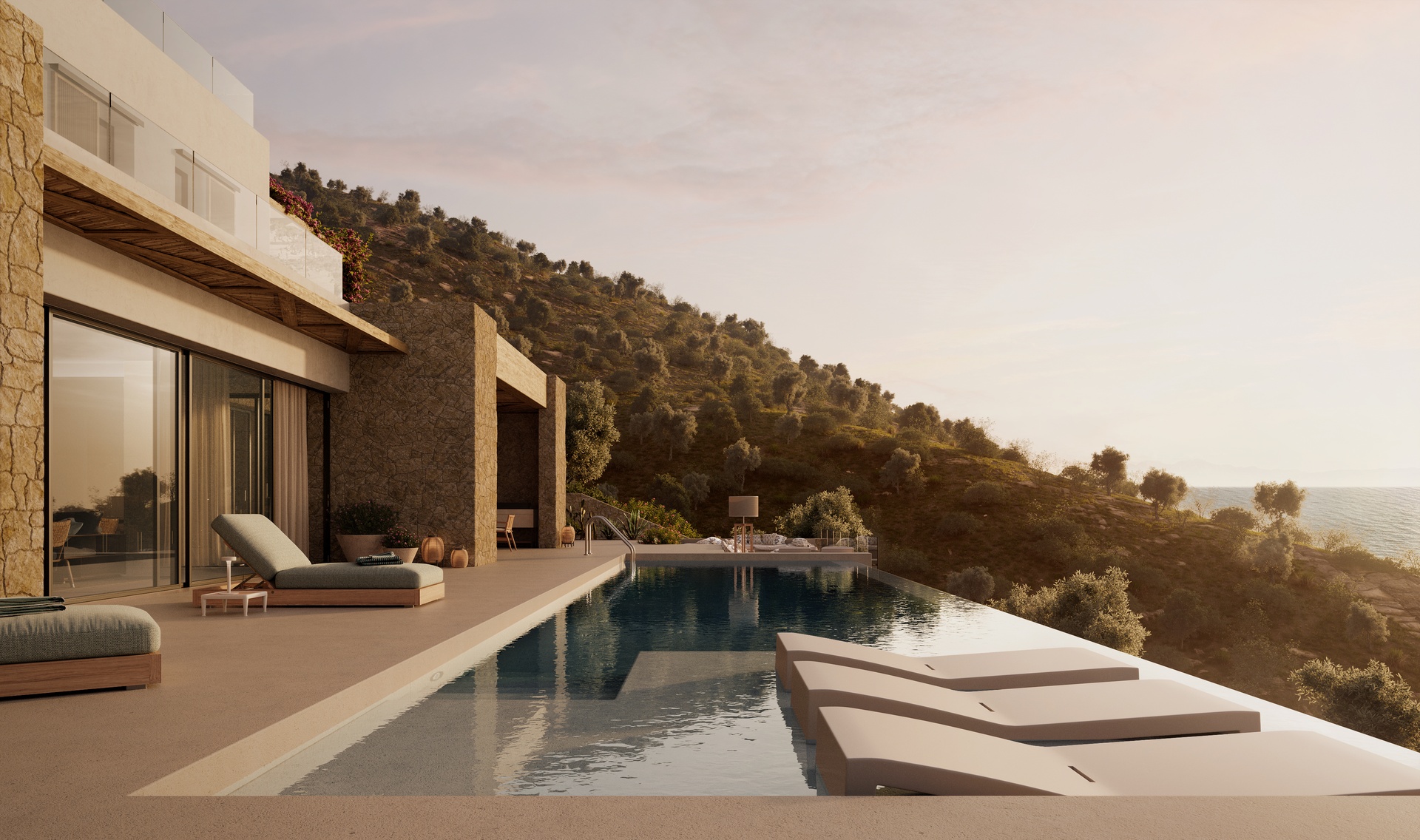 The Mirabello Villas Collection at Elounda Hills benefits from climate responsive and environmentally sensitive design at its core.
