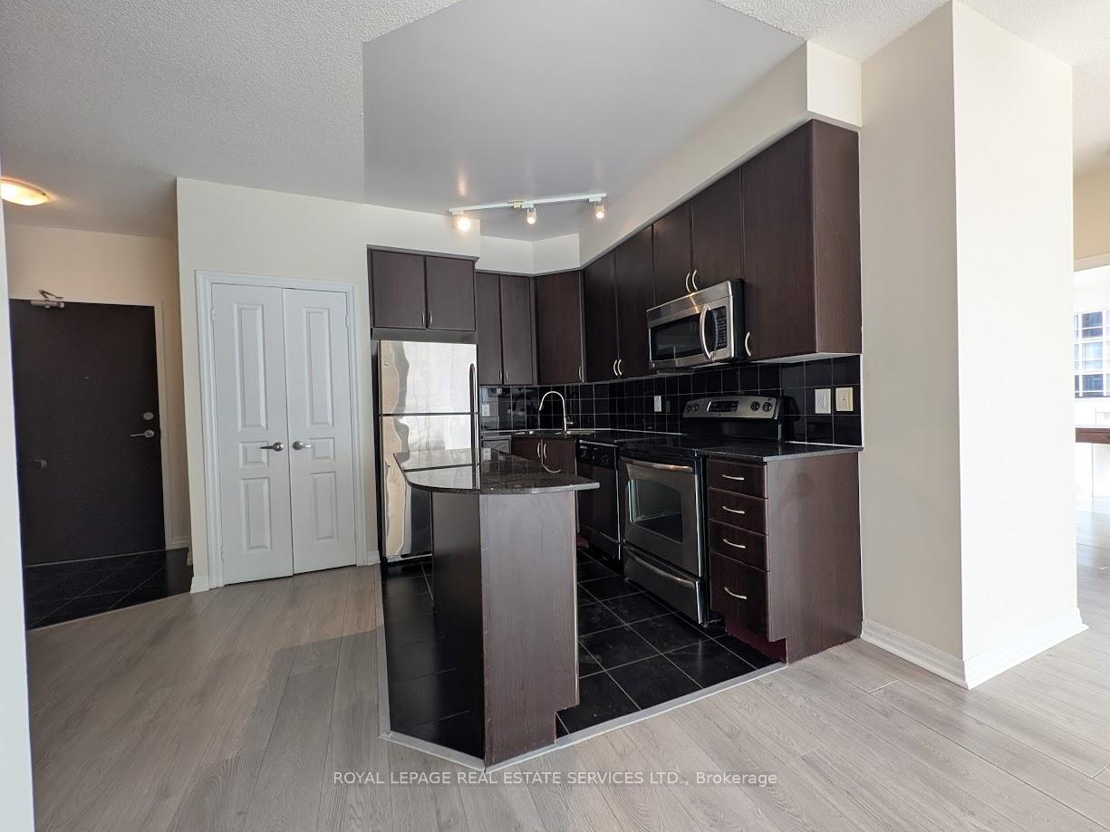 Welcome to this bright and modern corner unit, ideally located just steps from Square One. Featuring quality laminate flooring throughout and floor-to-ceiling windows, this suite is filled with natural light and offers stunning views of the Mississauga skyline and Lake Ontario. The kitchen boasts granite countertops,a center island, and stainless steel appliances perfect for everyday living and entertaining. The split bedroom layout provides privacy, with a spacious primary bedroom offering his-and-her closets and a private 3-piece ensuite. Enjoy the convenience of a medical clinic and 24-hour grocery store right at your doorstep, along with excellent building amenities.