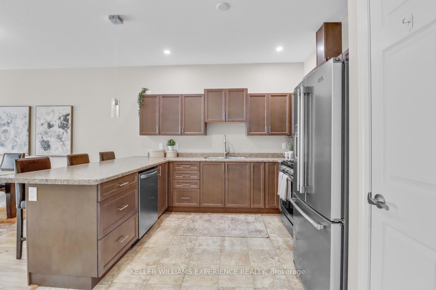Versatile In-Law with Walkout! Discover 92 Lily Drive, a standout property in Orillias desirable North Lake Village. Built in 2017, this bungalow is designed for easy living with the bonus of a fully finished lower level that doubles as its own suite. Complete with 9' ceilings, a full kitchen, bedroom, bath, spacious living area, and walkout entrance, the lower level offers a ready-made in-law setup, or private retreat for extended family. On the main floor, the bright open-concept layout features soaring 9' ceilings, a modern kitchen with pantry and breakfast bar, and a walkout from the living/dining area to a large deck overlooking the backyard. The primary suite includes a walk-in closet and 3-piece ensuite, joined by a second bedroom and full bath perfect for guests or flex space.What truly sets this home apart is the basement design, essentially a second living space with its own entrance, creating a rare opportunity for multi-generational living. Additional highlights include main floor laundry, pot lights, covered front porch, garage with inside entry, double driveway, and visitor parking directly across the street. Lawn maintenance and snow removal for shared areas are included leaving you responsible only for your own yard and drive. The location is unbeatable: steps from the Millennium Trail and minutes to Hwy 11, shopping, beaches, the marina, golf courses, schools, hospital, and Casino Rama. Whether youre downsizing, investing, or simply seeking a home with built-in flexibility, 92 Lily Drive is an opportunity not to be missed!