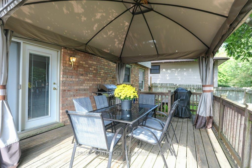 Framed by mature trees and a beautifully landscaped yard, this two-storey brick home offers a peaceful retreat in one of Aylmer's most desirable neighborhoods. With 3 bedrooms and 2 baths, its a comfortable and functional space ideal for families or anyone seeking a blend of charm and convenience. Enjoy the privacy of a fully fenced backyard and gazebo, complete with a recently updated deck. Perfect for relaxing or entertaining. Inside, the main floor features a bright eat-in kitchen, a versatile dining room or home office, and a cozy family room to unwind. French patio doors lead directly to the outdoor living space. --- --- The finished lower level adds even more flexibility, with a rec room, ample storage, a large laundry/utility room, and a bonus space ideal for a pantry or hobby area. Additional highlights: Attached garage with inside entry, Double-paved driveway with parking for 5.  Recent upgrades: washer, dryer, dishwasher, and deck!  -- --- Move-in ready  Located near parks, schools, and local amenities, this home combines curb appeal with everyday practicality.   ----  ---  Book your showing today and experience it for yourself!