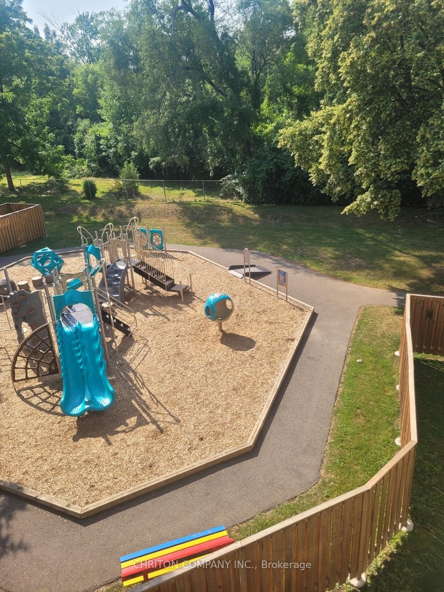 A well kept two storie unit backing on the playground and conservation area. Two good size bedrooms are on the second floor with a four piece bathroom. The main floor has a den that could be easily used as a bedroom. A large living area and dining room welcomes from the front door. the laundry room has a new washer and dryer. the heating and cooling was replaced in 2018. the swimming pool and Sauna Have been refurbished, Newly renovated Gym. The Seller is willing to pay 50% of the maintenance fee for the next 2 years to the buyer