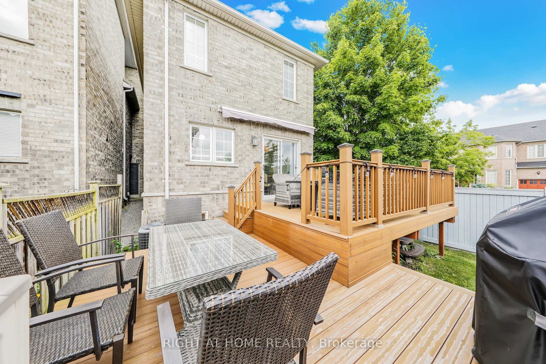 Move in ready corner executive freehold townhome. Just like a semi-detached the home is connected only by the garage and one bedroom. The main floor features 9 ft ceilings, hardwood throughout, and a versatile study/4th bedroom. The kitchen offers granite counters, stainless steel appliances, and walk-out to a 2-level professional expensive composite deck with an electric awning perfect for entertaining in all seasons. Upstairs, the primary suite includes a 4-pc ensuite, walk-in closet, and rough-in for 2nd-floor laundry. The professionally finished basement adds a large recreation room, 3-pc bath, brand new laundry suite, and kitchenette rough-in. Access to basement from garage. In-law living or income potential. all expensive updates complete roof (2018), HVAC (2021), garage door (2019). EV-ready garage. An entertainers dream enjoy a fenced corner lot, covered porch facing a parkette. Perfect for commuters and families. Close top schools Red Maple PS, St. Robert CHS, IB program schools, Langstaff GO (20 minute walk), VIVA transit, shops, and Hwys 7/407/404.