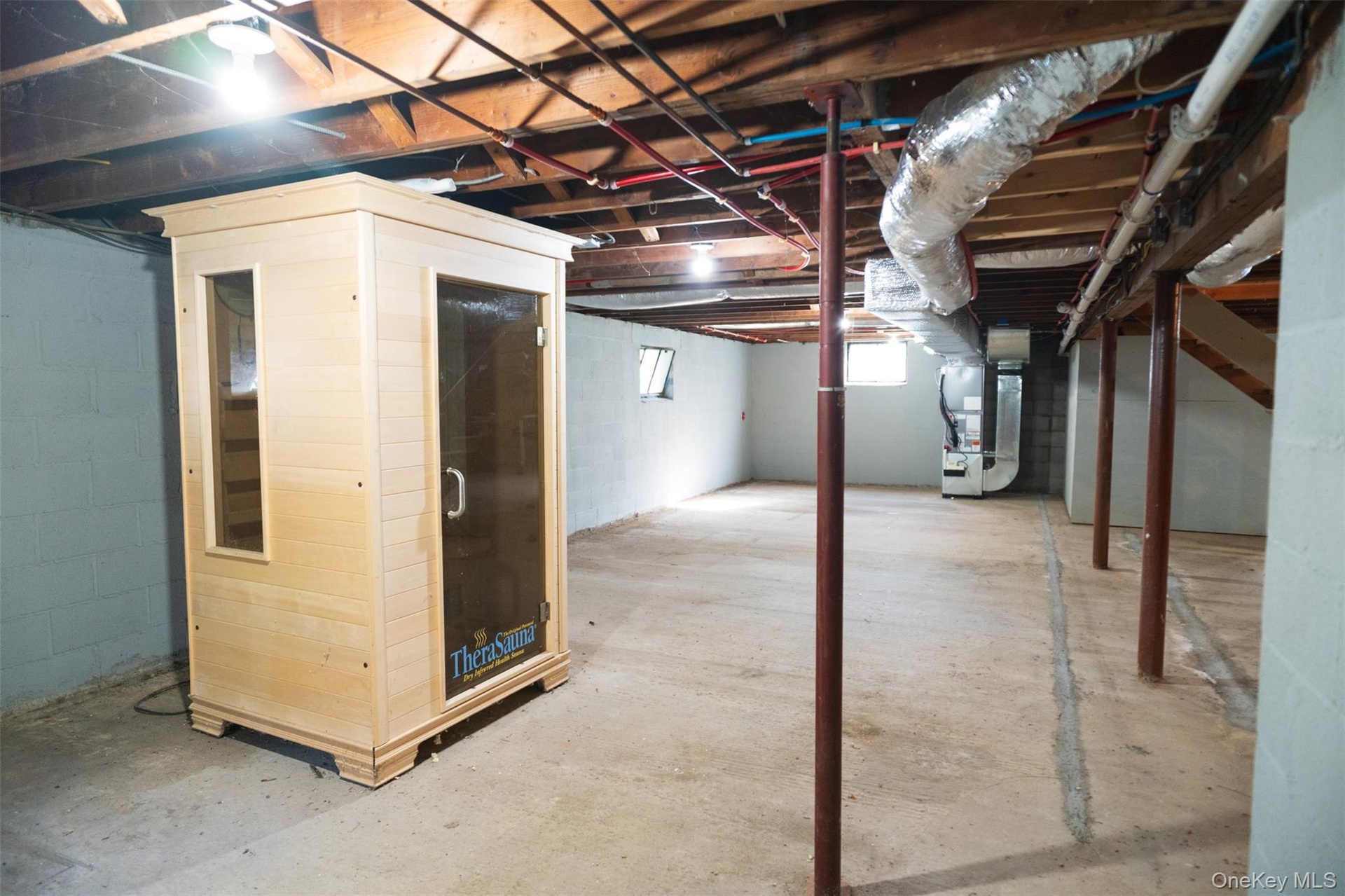 - Below grade area featuring stairway, plenty of natural light, and electric panel