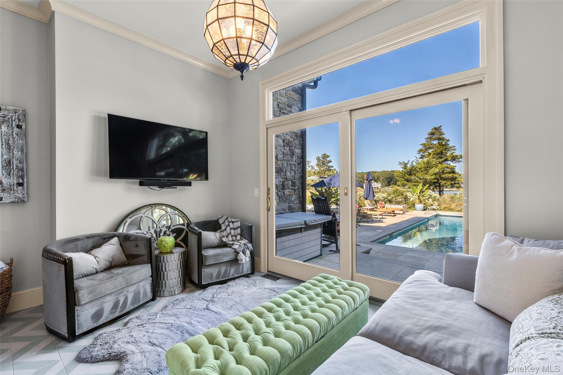 Step outside to your own serene and secluded nature preserve, enjoy spa like living complete with an inground heated gunite pool, year-round enjoyment with bubbling hot 12’ swim spa, an infrared/steam sauna for ultimate relaxation, and a rejuvenating cold plunge pool for wellness enthusiasts, set within meticulously landscaped and lighted grounds. The limestone patios, outdoor kitchen, 8’ outdoor gas firepit all provide an unparalleled entertaining  experience under the stars. The Chateau offers a lifestyle of sophistication, serenity, comfort, and nature and  beauty, perfectly positioned at the epicenter of historical Old Field.