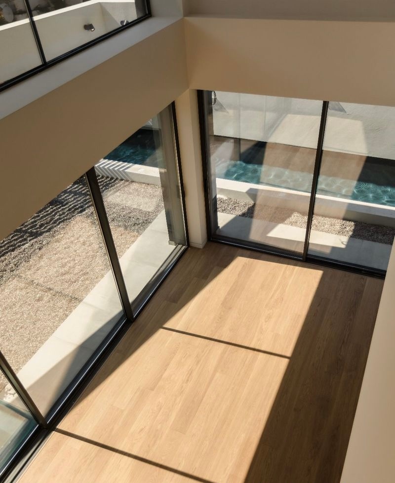 It hosts a spacious living room with plenty of natural light, in an open layout with the dining room and the elegant kitchen. The area leads to a private garden with a swimming pool, ideal for moments of relaxation and hospitality. On the same level there is a comfortable bedroom with its own bathroom (en suite), as well as a guest WC.
