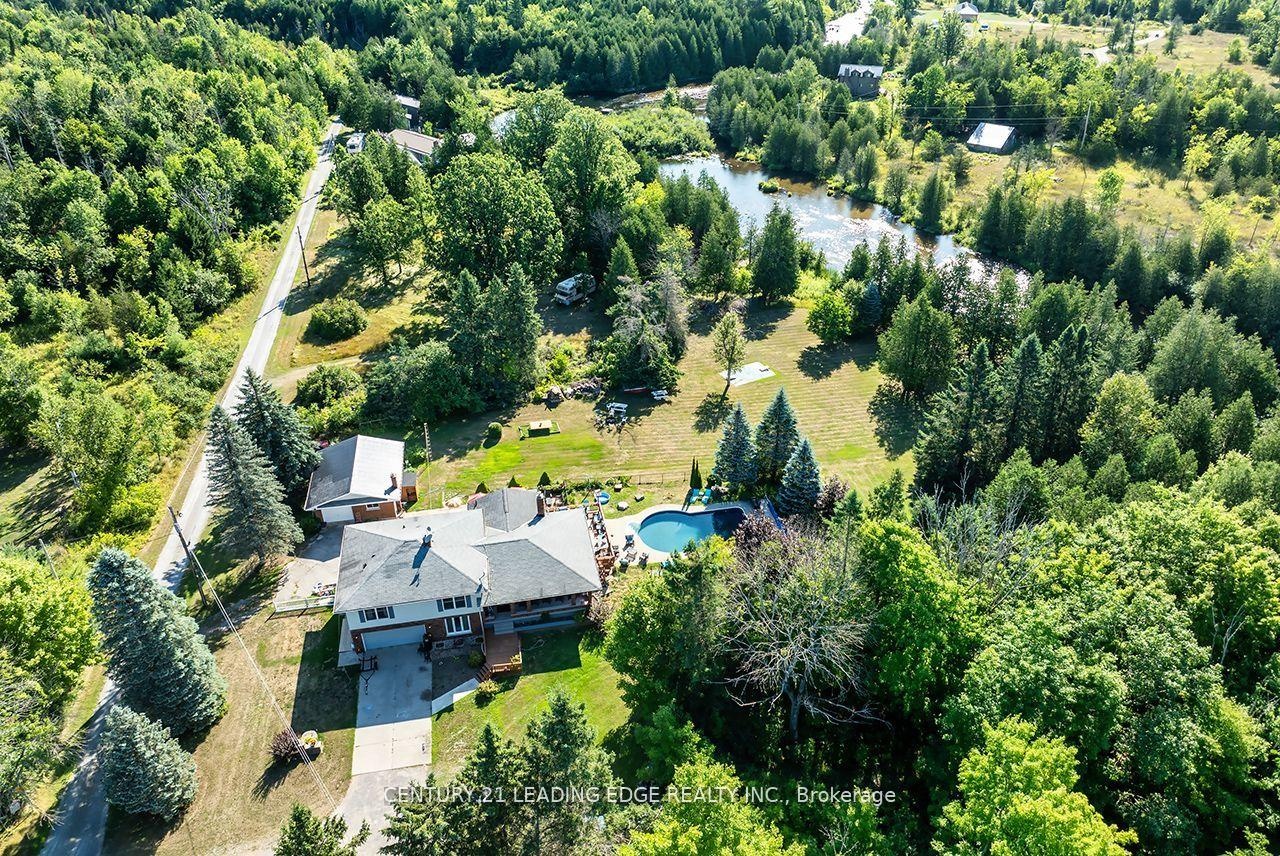 Stunning Waterfront Retreat - A Rare Gem! Whether you are dreaming of creating a a family compound or seeking a smart investment with multiple income generating units, this property delivers flexibility, privacy, and incredible potential! The main residence is a spacious 4 level sidesplit that offers the perfect blend of comfort, functionality, and waterfront luxury. Nestled on a picturesque lot, this property boasts breathtaking views and direct waterfront access - a true sanctuary for nature lovers and outdoor enthusiasts. Step inside to find a warm and inviting interior. Curl up by the fireplace for a relaxing evening with friends and family. The heart of the home boasts a bright, well appointed kitchen with multilevel spacious living areas that feature panoramic nature and river views. The two secondary structures offer solid foundations and great layouts ready for conversion into full living spaces. Ideal for In-law suites, guest houses, short term rentals or long term tenancies. Each building has it's own access and privacy, creating limitless layout possibilities. Enjoy the summer months in your private inground pool, or retreat to the bunkie along the waterfront, ideal for guests, a home office or a peaceful escape. Car lovers and hobbyists will appreciate the detached 3 car garage, including pit, with a living space! Plenty of room for all your toys and tools. Take solace knowing your pets are protected with Invisible Fencing around the perimeter of the property. Whether you are hosting summer gatherings, paddling along the river, or simply soaking in the serenity, this property offers a rare combination of Privacy, Space, and stunning Natural Beauty! This is more than a home - it's a lifestyle. Don't miss out on your opportunity to own a piece of paradise! Just a 2 minute drive to Stoney Lake public launch.