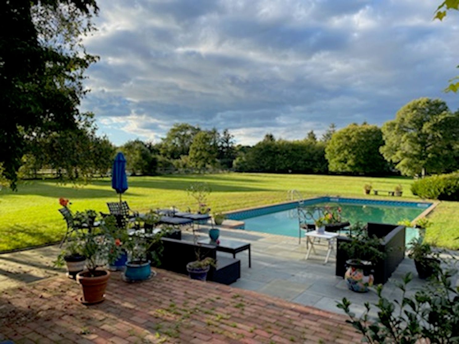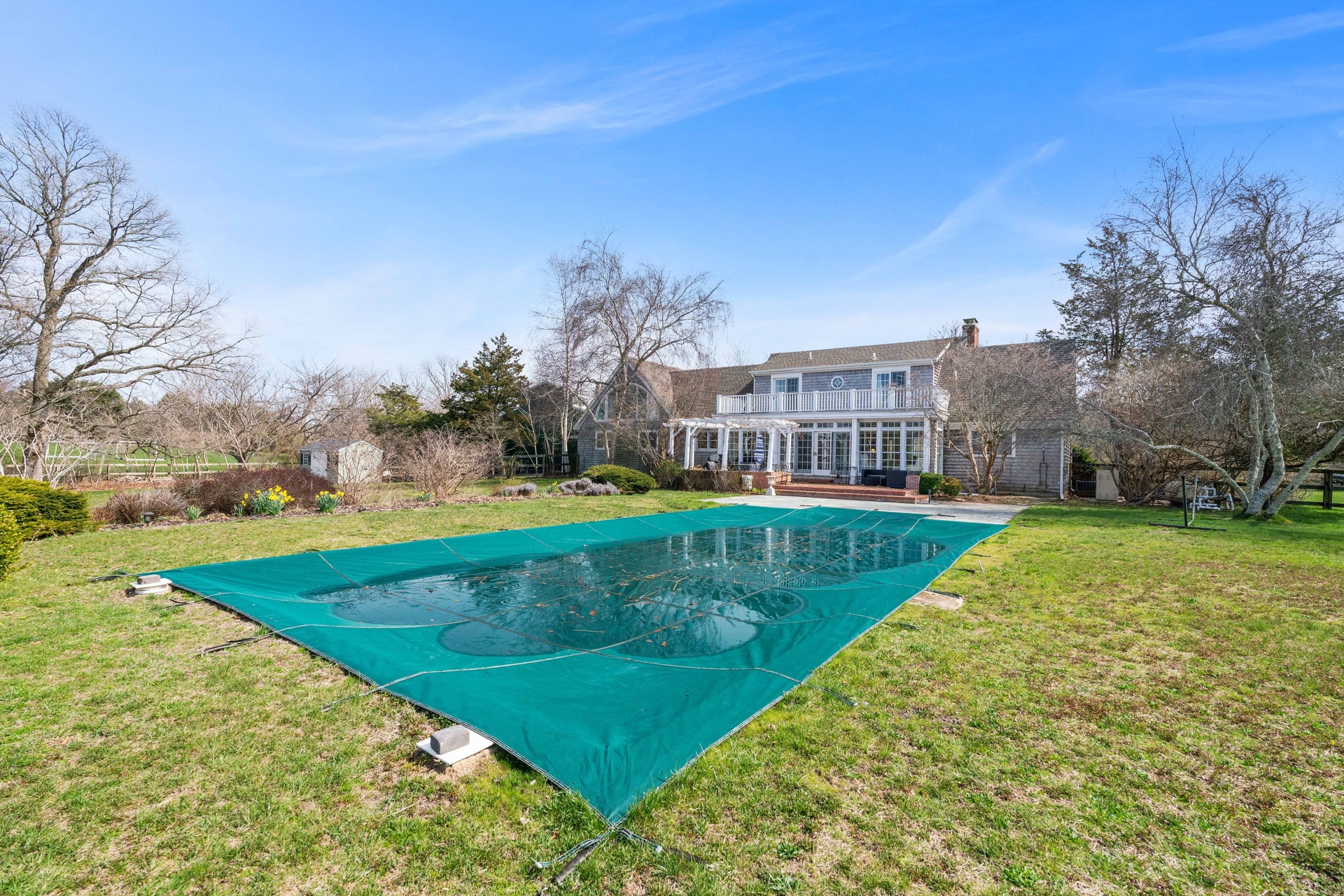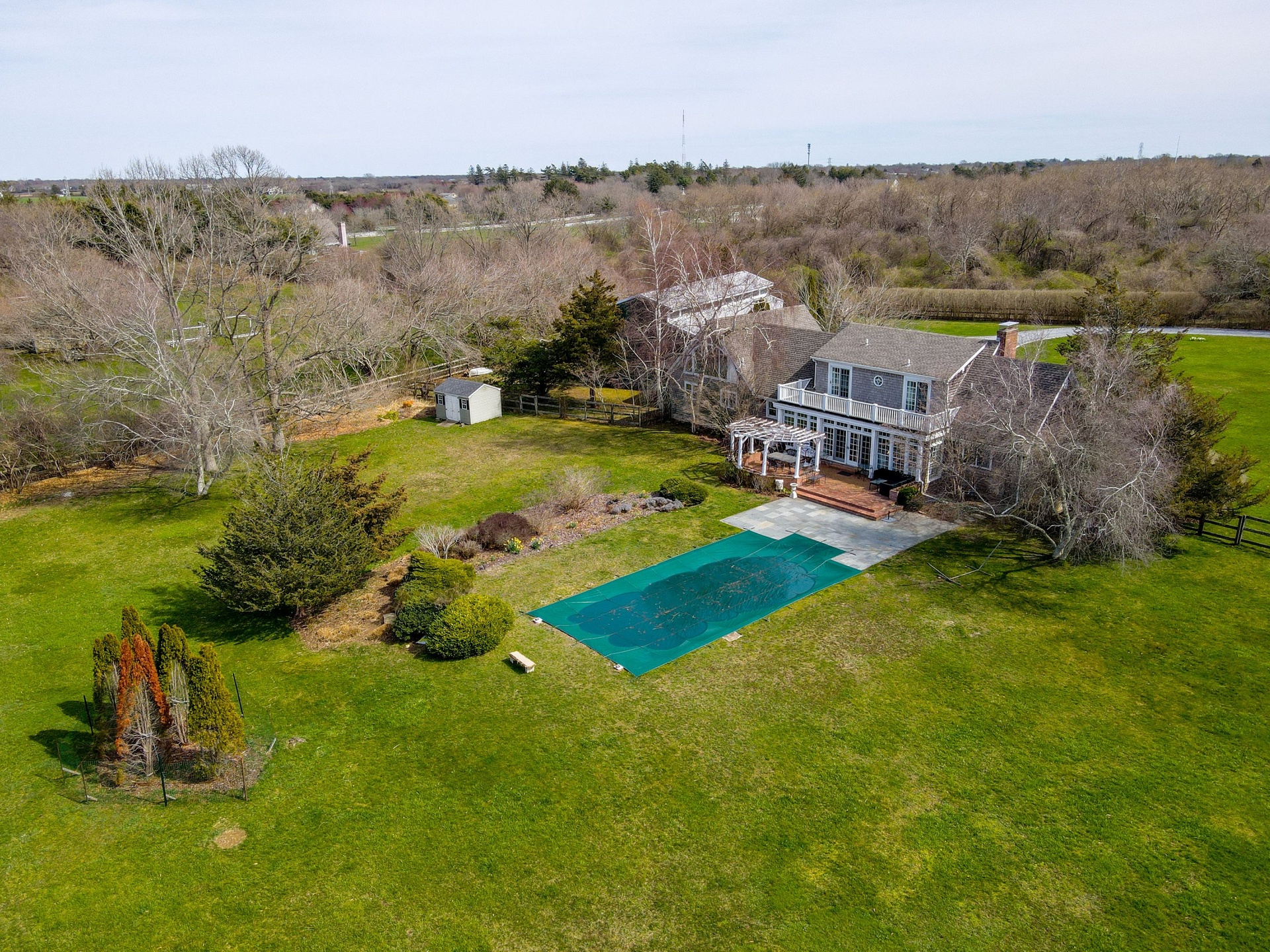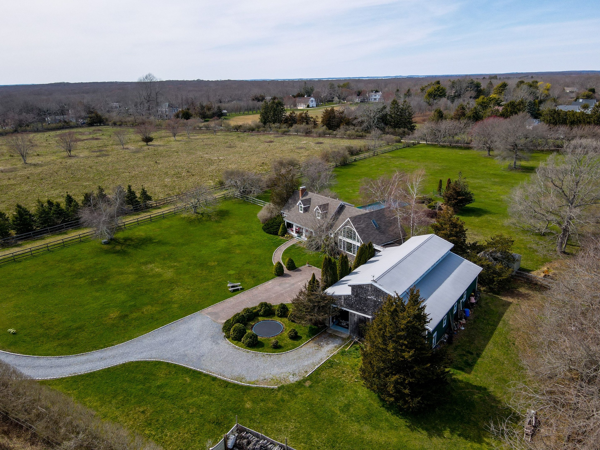 Beautiful horse country location, close to village, offering 4 private acres. Well-appointed family home with 4 bedrooms, 3 full baths, 2 half baths, new kitchen, large living spaces, and central air. Exterior amenities include a huge barn for sports and gym, as well as a heated 20×40 pool.